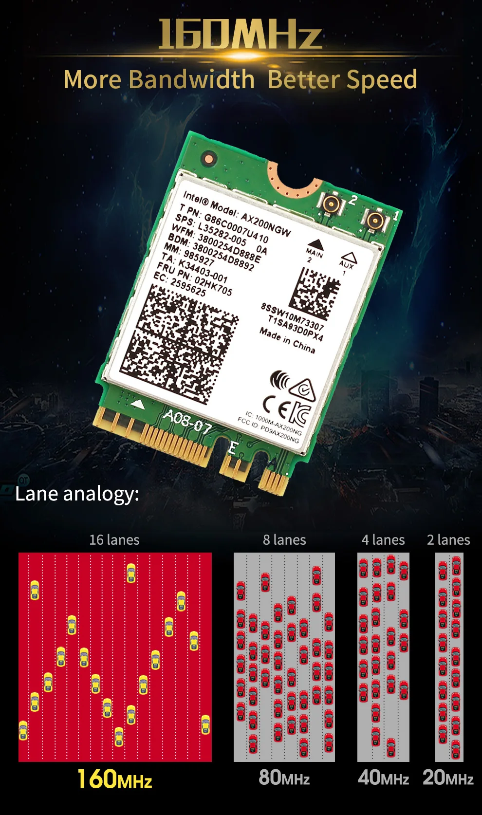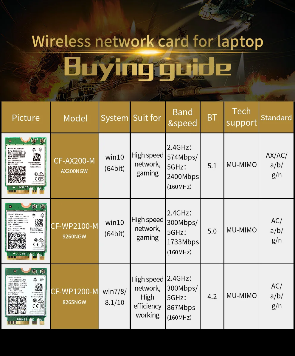 Беспроводной-AC AX200 Ultra Wi-Fi, ультра функции, ультра подключенный опыт. Wi-Fi 6 AX200 поддерживает 802.11ax через антенны 2x2 MU-MIMO в диапазоне 2,4 ГГц и 5 ГГц. AX200 поддерживает Bluetooth 5,1. Максимальная пропускная способность, поддерживаемая Wi-Fi 6 AX200,-скоростная скорость 2,4 Гбит/с (160 МГц). AX200NGW может обеспечить гигабитную скорость загрузки 1 и значительно улучшить ваш опыт работы дома, на работе или в пути.