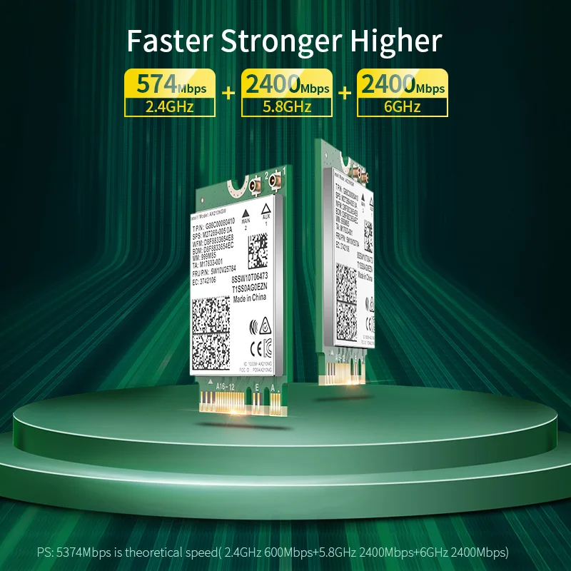 6-го поколения Wi-Fi 2,4G /5 ГГц Bluetooth 5,1 2974 Мбит/с скорость Wi-Fi 160 МГц полоса пропускания