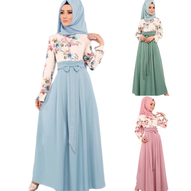 Мусульманское женское платье Абая, обманка из двух частей, полная длина, круглый вырез, имеют элементы одежды Ретро, этнический стиль.