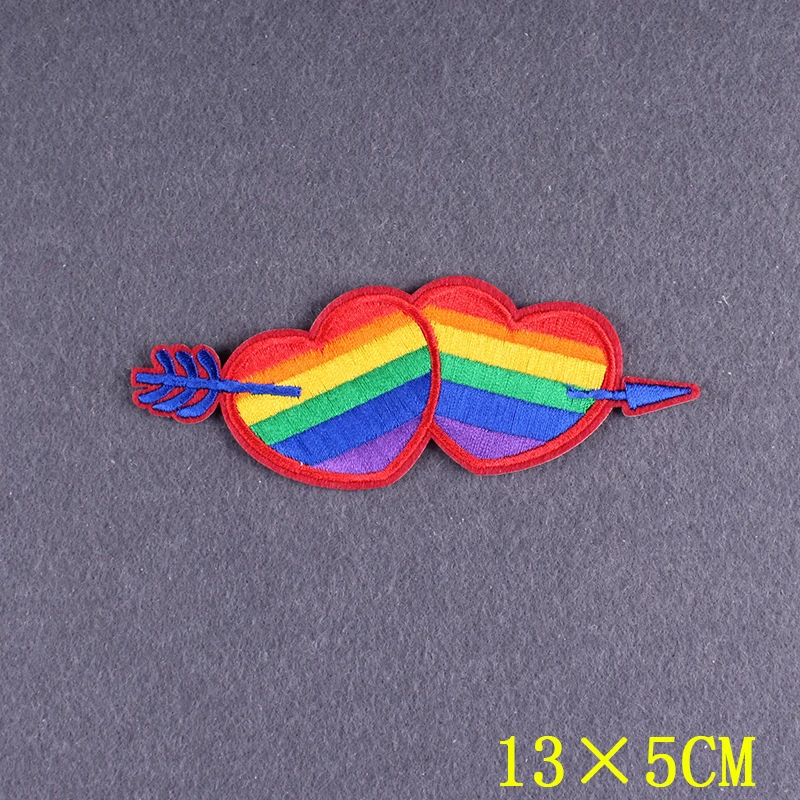 В форме сердца патч Вышивка Патчи для одежды в полоску красочные средства ухода за губами патч приклеивающиеся утюгом нашивки DIY Радужный Флаг ЛГБТ значки-нашивки на одежду