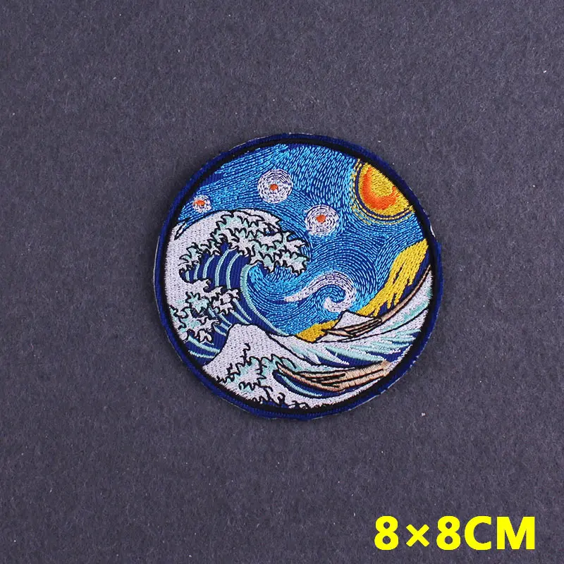 Утюжок на патч КИТ патчи на одежду морская волна патч естественная одежда полосы Ван Гог патч, вышитые патчи на одежду