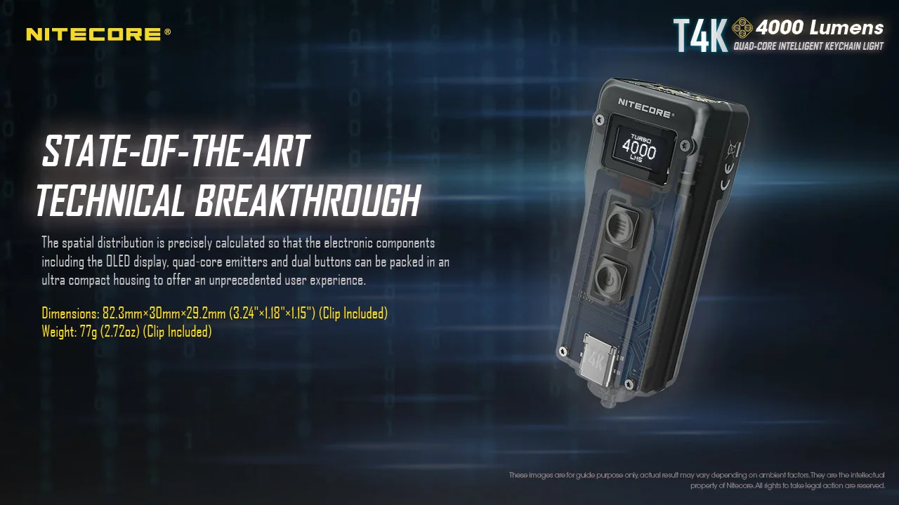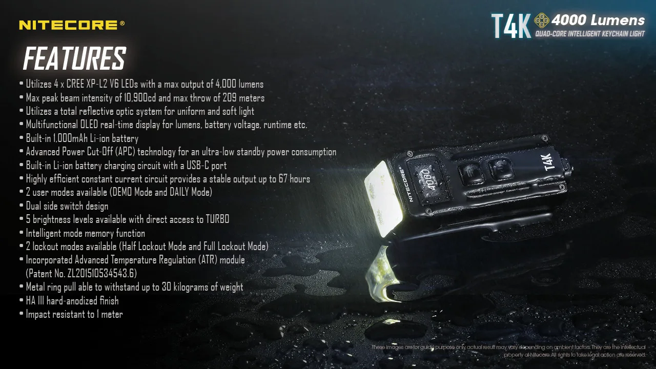 Посылка включает в себя: Nitecore T4K * 1, Пряжка для ключей * 1, кабель USB type-C * 1, руководство * 1