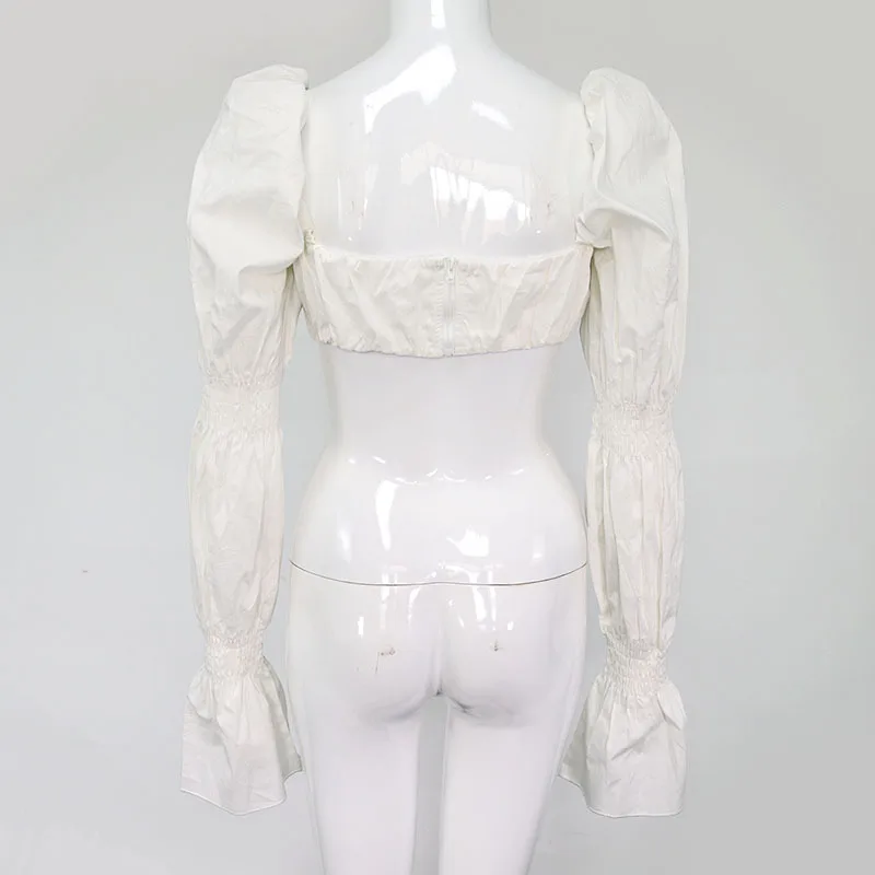 JaneVini 2021 сексуальная белая блузка летняя Женская Расклешенная рубашка с длинными рукавами и открытой спиной с квадратным вырезом и рюшами на шнуровке повседневные женские топы