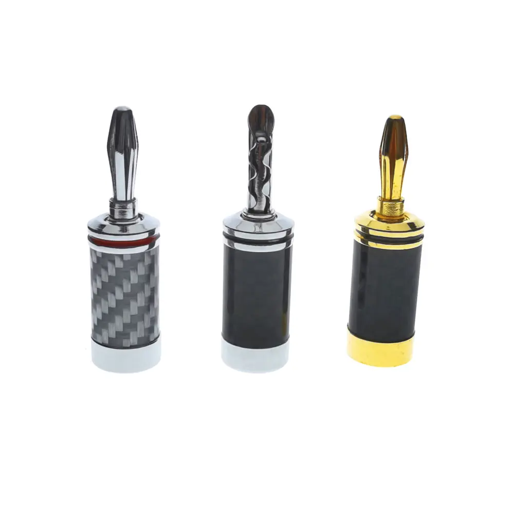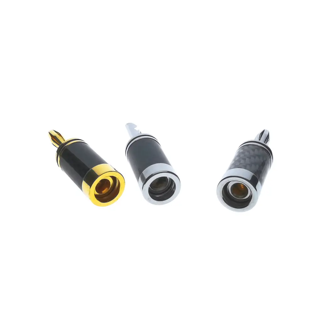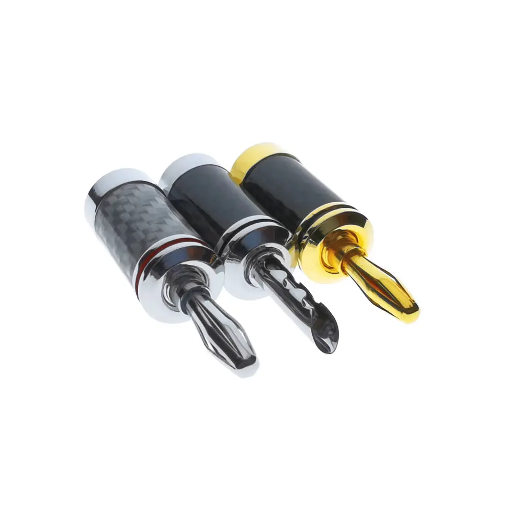 Медный проводник Позолоченный для лучшей передачи сигнала Корпус из медного сплава и углеродного волокна Корпус из углеродного волокна обеспечивает эффективное электромагнитное экранирование Кабель с диаметром провода до 5 мм Запорный винт