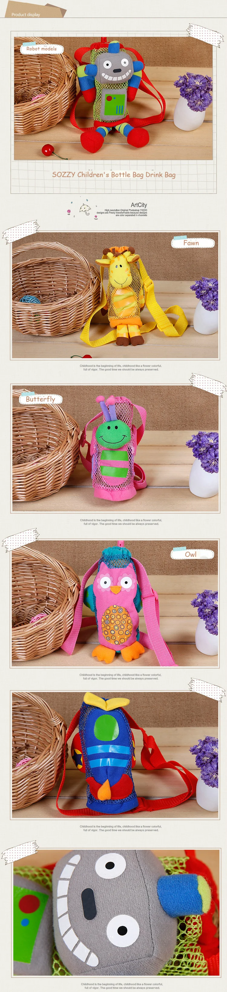 -Высококачественные экологически чистые материалы и легкий вес. -Регулируемый ремешок для удобной переноски. -Растягивается, чтобы поместиться в одну детскую бутылочку, чашку для Сиппи, коробку для сока и т. д. -Пять доступных стилей: сова, Бабочка, робот, жираф, самолет. -Идеальный подарок для детей на Рождество или день рождения. -Можно стирать.