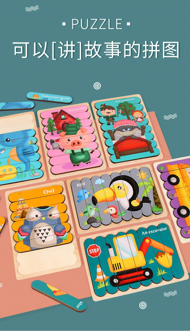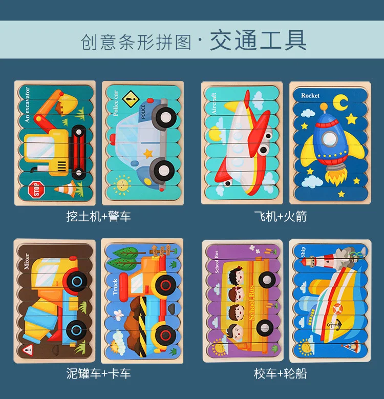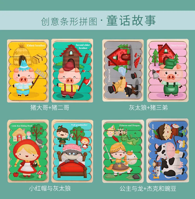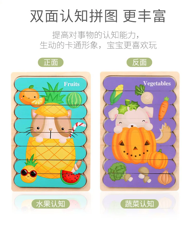 -Название продукта: деревянная игрушка Монтессори 3D Пазлы для лобзиков детская креативная история Двусторонняя укладка подходящая головоломка ранняя развивающая игрушка