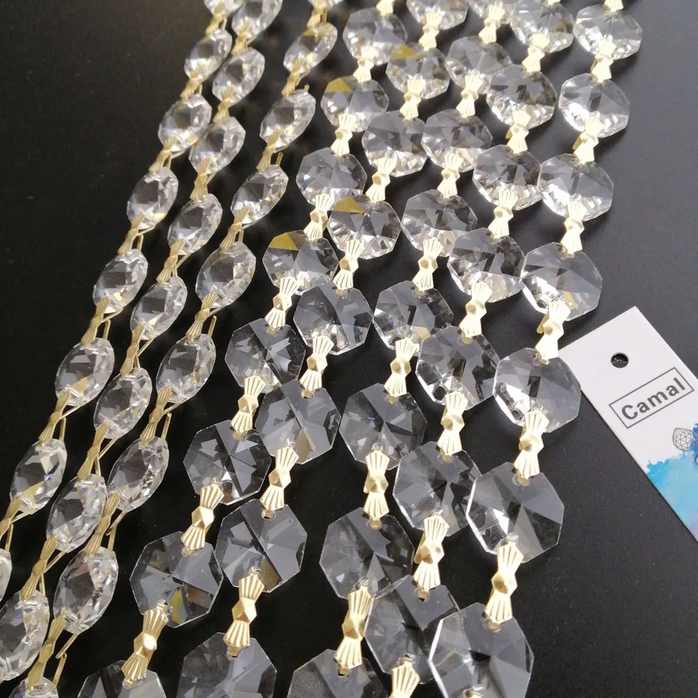 Прозрачная (Золотая Бабочка) гирлянда с восьмиугольными бусинами 14 мм, 100 см