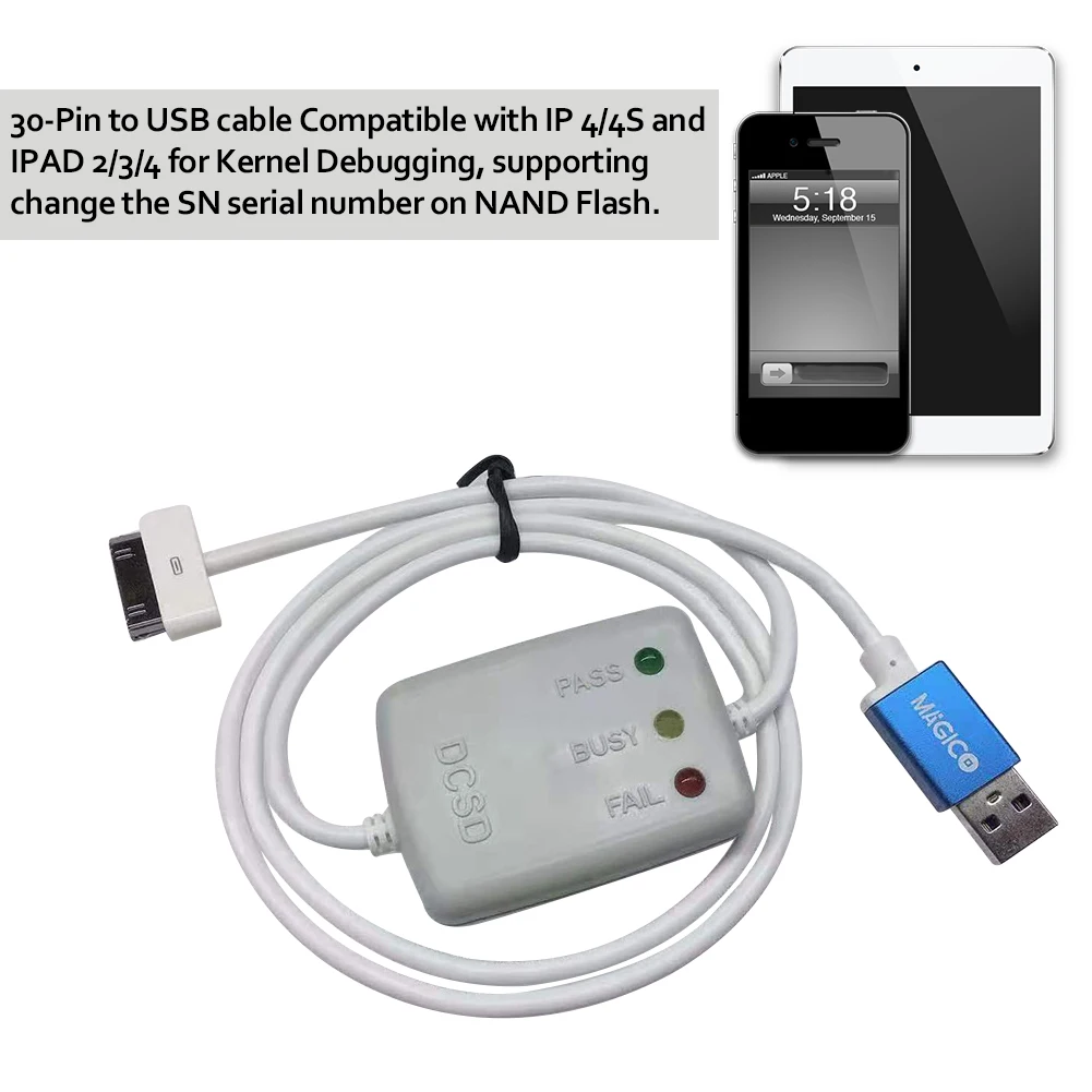 30-контактный USB-кабель совместим с IP 4/4S и IPAD 2/3/4 для отладки ядра, поддерживает изменение серийного номера SN на NAND Flash.