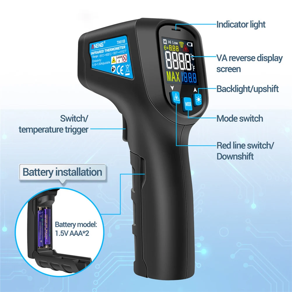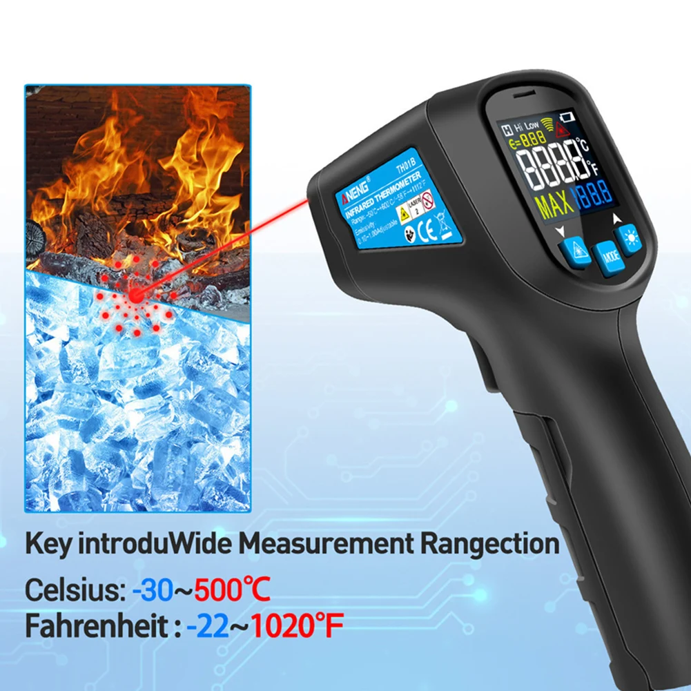 TH01B Высокоточный инфракрасный термометр Бесконтактный измеритель температуры ручной цифровой промышленный наружный лазерный пирометр термометр