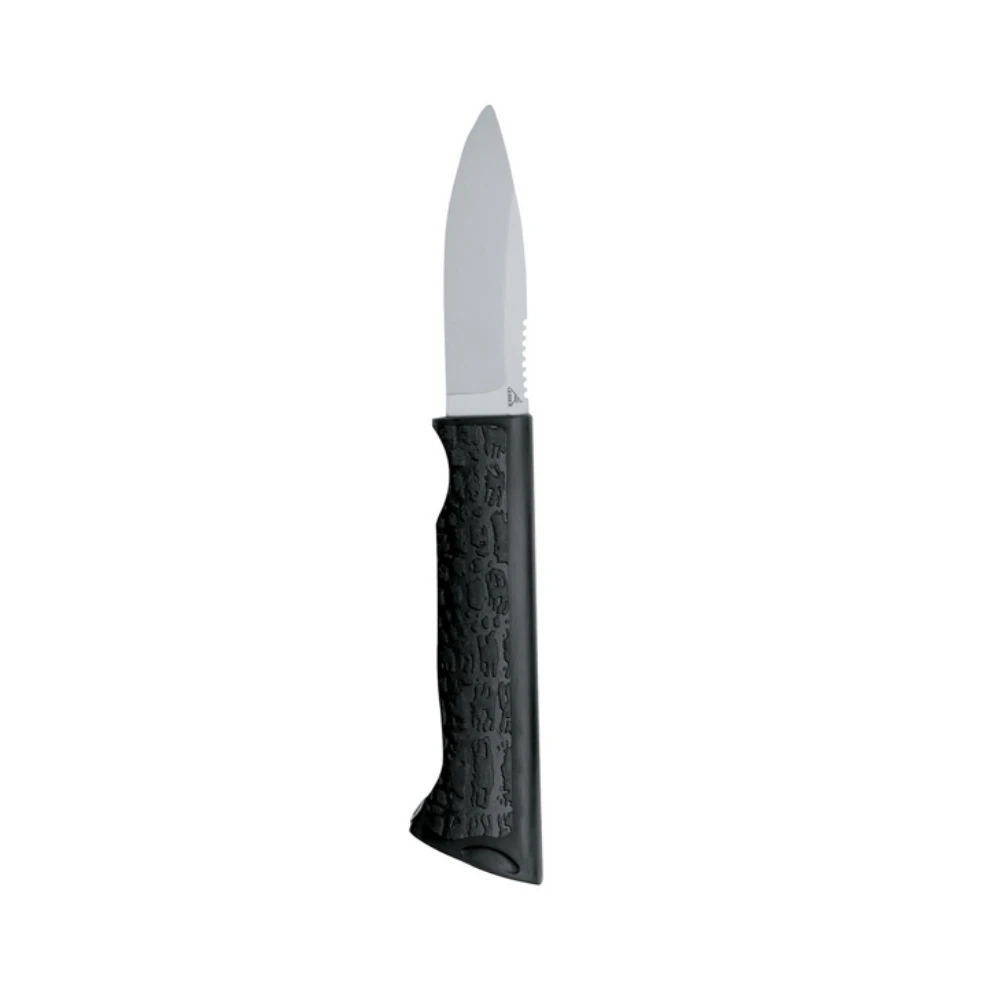 Нож изготовлен из высокопрочной стали и оснащен лезвием прямой заточки, при этом на обухе ножа имеется зазубренный участок для упора большим пальцем. Рукоятка ножа изготовлена из такого же материала, что и рукоятка топора, и комфортно лежит в руке. Длина ножа почти 18 см, а лезвия – чуть больше 7 см. Кроме того, в комплект входит надежный чехол, который позволит комфортно и безопасно переносить инструменты в рюкзаке. Набор упакован в блистер.