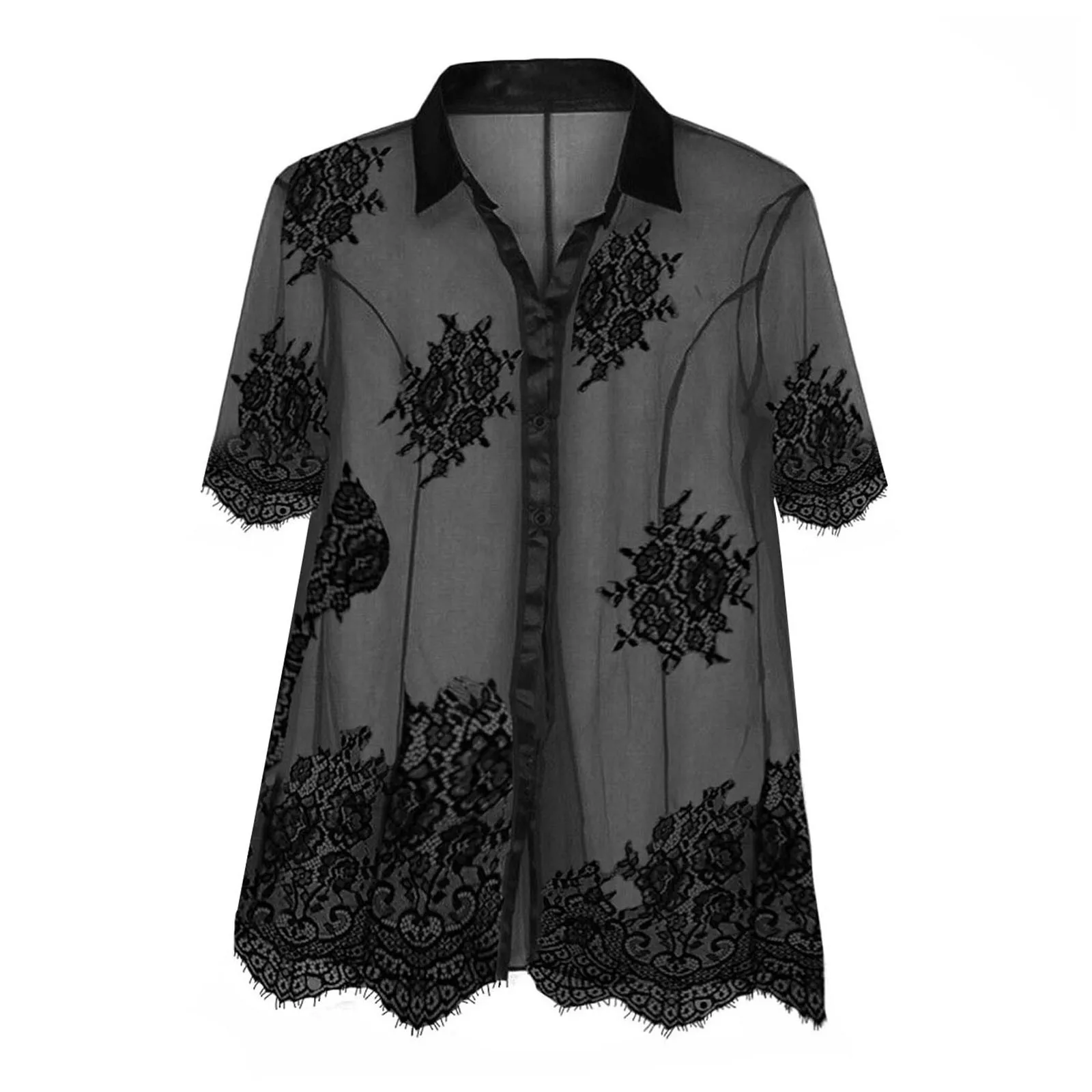 Женское вечернее платье с цветочной вышивкой, сексуальное прозрачное кружевное мини-платье-рубашка, черное экзотическое нижнее белье, Bielizna Erotyczna