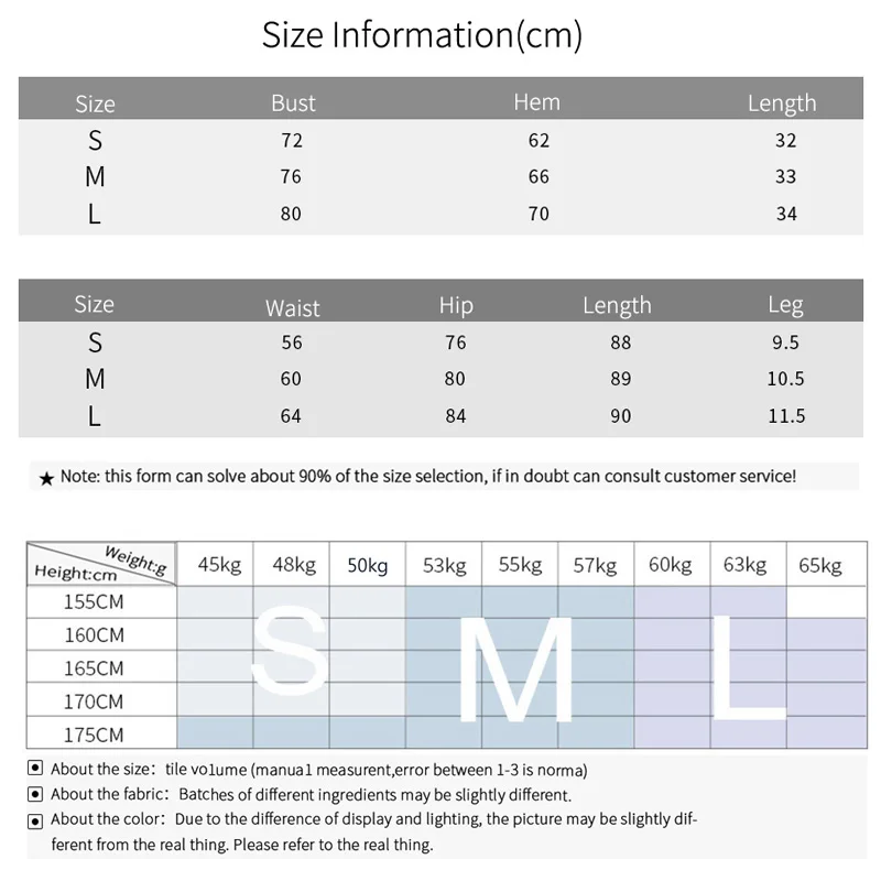 * Поскольку у каждого человека разная форма тела, рекомендуемый бюст можно использовать только в качестве примера. * Если ваш рост и вес находятся между 2 размерами, пожалуйста, выберите больший размер. * Если вы не уверены, какой размер выбрать, свяжитесь с нами. * Информация о размере измеряется вручную, возможна погрешность в 1-2 см, обратите внимание, что 1 см = 0,39 дюйма. * Из-за световых эффектов, настроек яркости/контрастности монитора и т. д. могут быть небольшие различия в цветовом тоне изображения и фактического товара! * Размер: S M L * Посылка входит: 1 женский набор