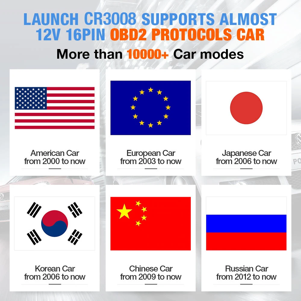 LAUNCH CR3008 поддерживает транспортные средства: