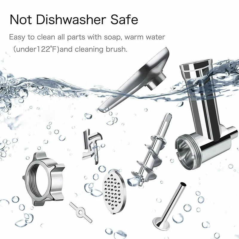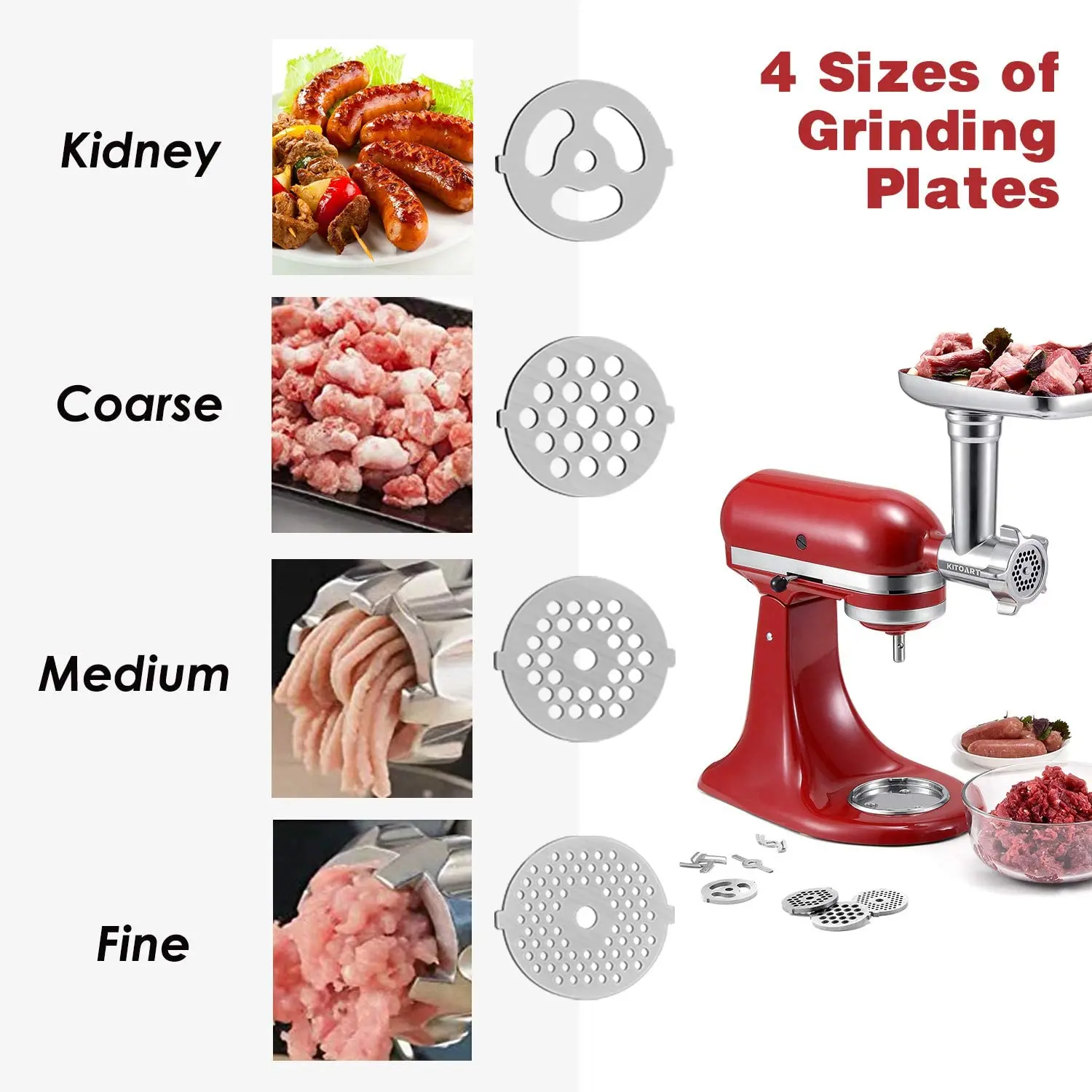 Вложения для KitchenAid мы стремимся предоставлять высококачественные насадки для миксера KitchenAid. Если у вас есть миксер KitchenAid и вы хотите есть мясо, гамбургеры и сосиски, это приложение является обязательным. Используя Предварительно упакованные продукты, вы можете оставить свой контроль над включенными ингредиентами. Свежесть, приготовление пищи с нуля не занимает много времени. Тонкие, средние и грубые шлифовальные пластины и две колбасные трубки позволяют легко создавать различные свежие, изобретательные продукты. Прикрепите мясорубку к концентратору питания любого миксера KitchenAid, и пусть миксер сделает все возможное. С дополнительными насадками вы можете измельчить свежее мясо, твердые сыры или сушеный хлеб для колбас и гамбургеров, твердые сыры, свежие хлебные крошки и многое другое.