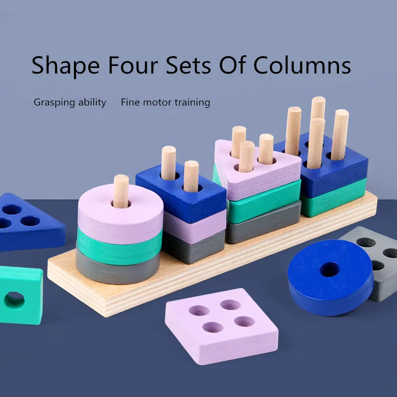 Детские деревянные игрушки Монтессори, строительные блоки, Обучающие Игрушки для раннего развития, цветная форма, детские игрушки для мальчиков и девочек, подарки