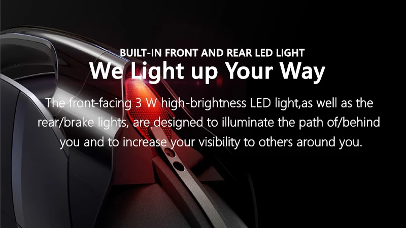 Передний светодиодный светильник высокой яркости 3 Вт, а также задний/тормозной светильник s, предназначены для освещения пути впереди/позади вас и для увеличения видимости окружающих.