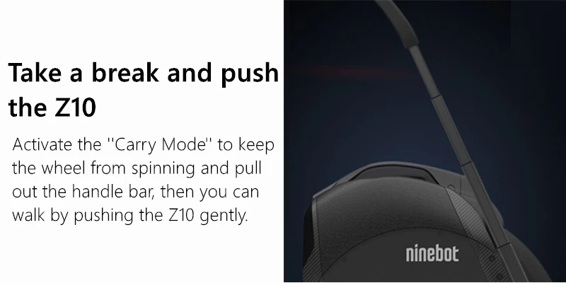 Активируйте «Режим переноски», чтобы держать колесо от вращения и Вытяните рукоятку, затем вы можете ходить, мягко нажимая Z10.