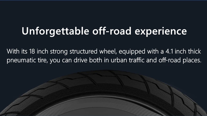 С его 18 дюймов сильная структура колеса, оснащенный 4,1 дюйма толщиной пневматические шины, вы можете ездить в городского транспорта и внедорожные места.