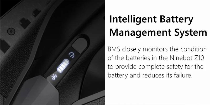 BMS внимательно следит за состоянием батарей в Ninebot Z10, чтобы обеспечить полную безопасность аккумулятора и уменьшить его сбой.