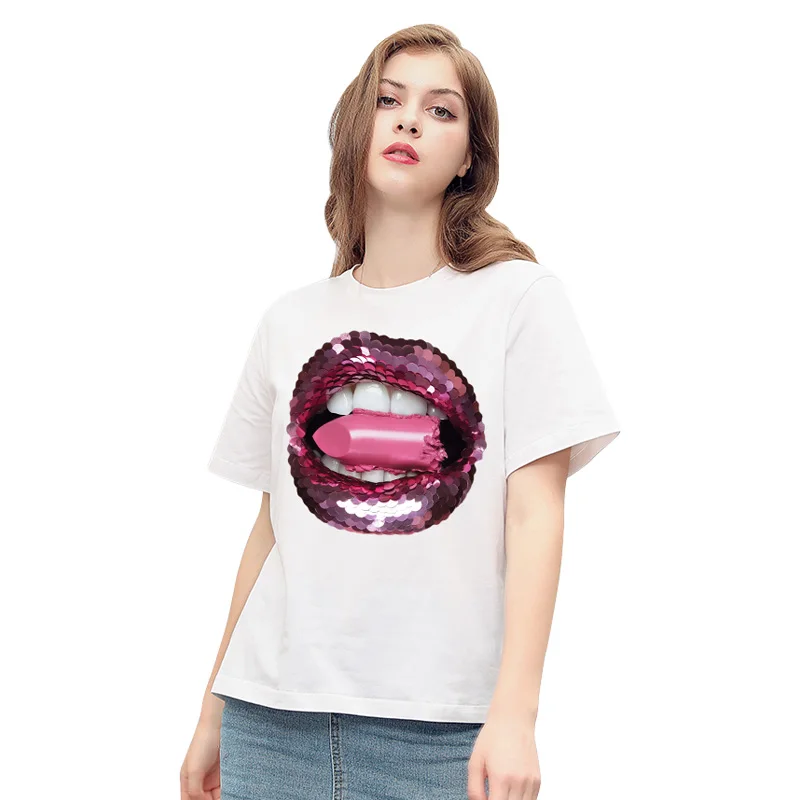 Sexy Lips Patches Fashion Women Heat Transfer Sticker On Clothes Thermal Sticker For T-Shirt Tops DIY Washable Iron On Transfers