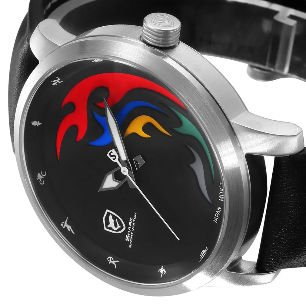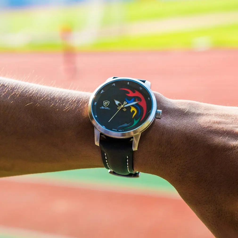 Топ класса люкс, спортивные часы с акулой, мировые спортивные игры, ограниченная серия, Бразилия, Rio, цвет пламени, белый, кожа, оливковый, с обратной стороны, Relogio Masculino /SH515