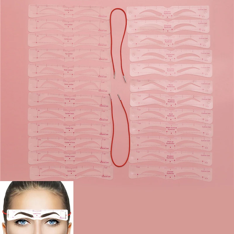 Упаковка включает: 24 шт./компл. трафареты для бровей + 2 веревки