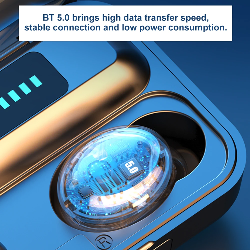 BT 5.0 brings high data transfer speed, stable connection and low power consumption. Automatically pair after taken out from the charging case.