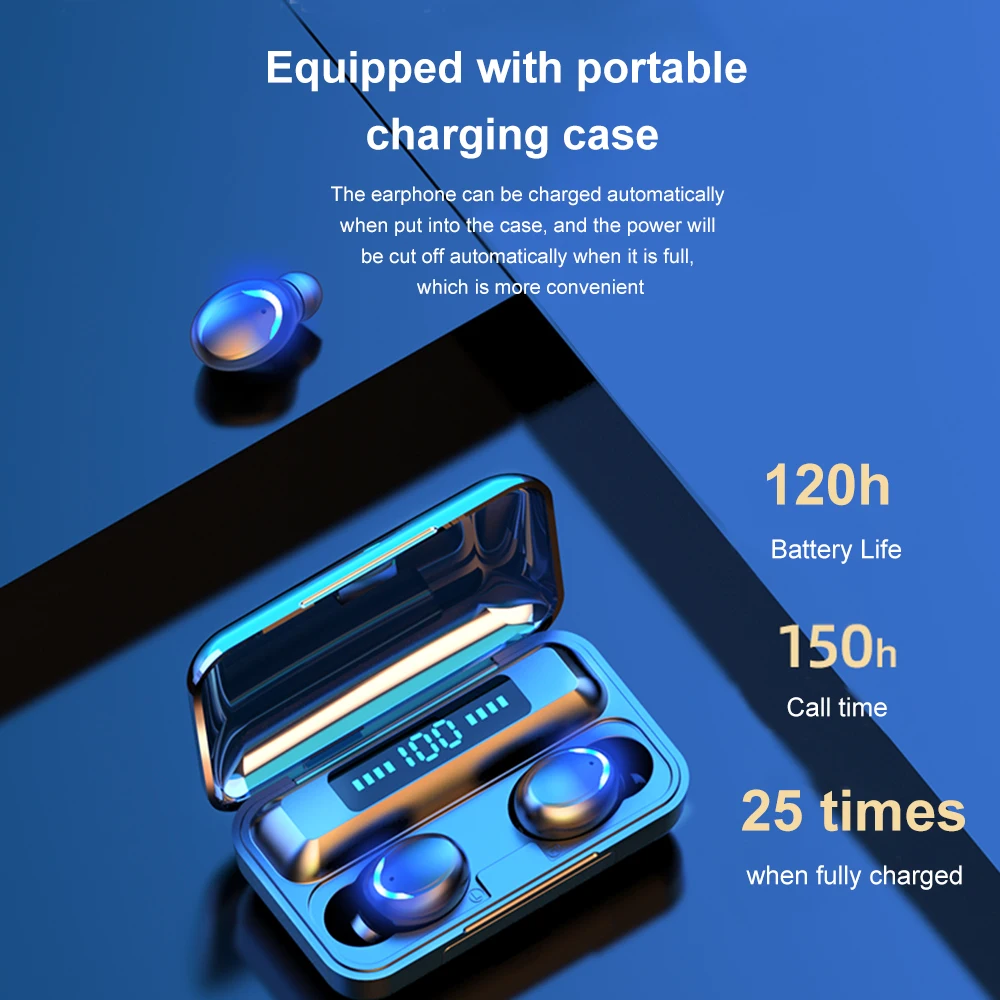 50mAh battery single ear earphone, and charged automatically in the 1200mAh charging case; LED power display can know the power status anytime.