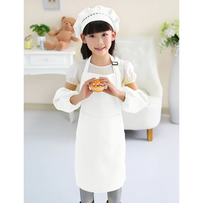 Посылка содержит 3 детских фартука и 3 повара. Фартуки с передним карманом, регулируемым ремешком на шее и завязками.