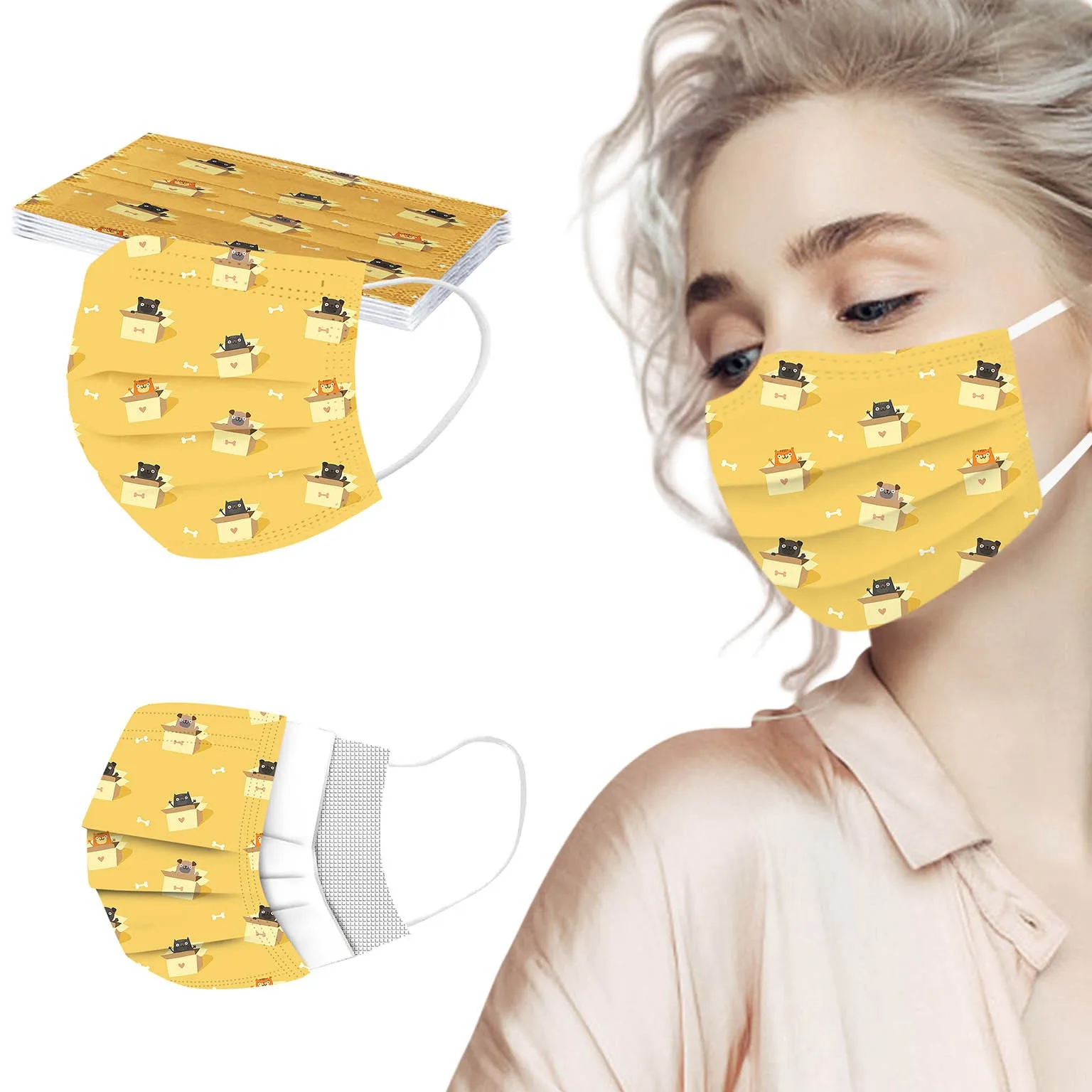 В 3 слоя (спанлейс) одноразовая маска изготовлена из 3-х слойный материала спанлейс, который является безопасным и здоровым для использования. Дышащий материал и милые узоры делают его практичным и стильным. Специальный трехслойный дизайн spunlace обеспечивает защиту от пыли, выхлопных газов автомобиля, пыльцы и т. д. эластичный ушной крючок легко носить и не оказывает давления на уши. Маникюрный салон или любые другие области, которые могут нуждаться в защите