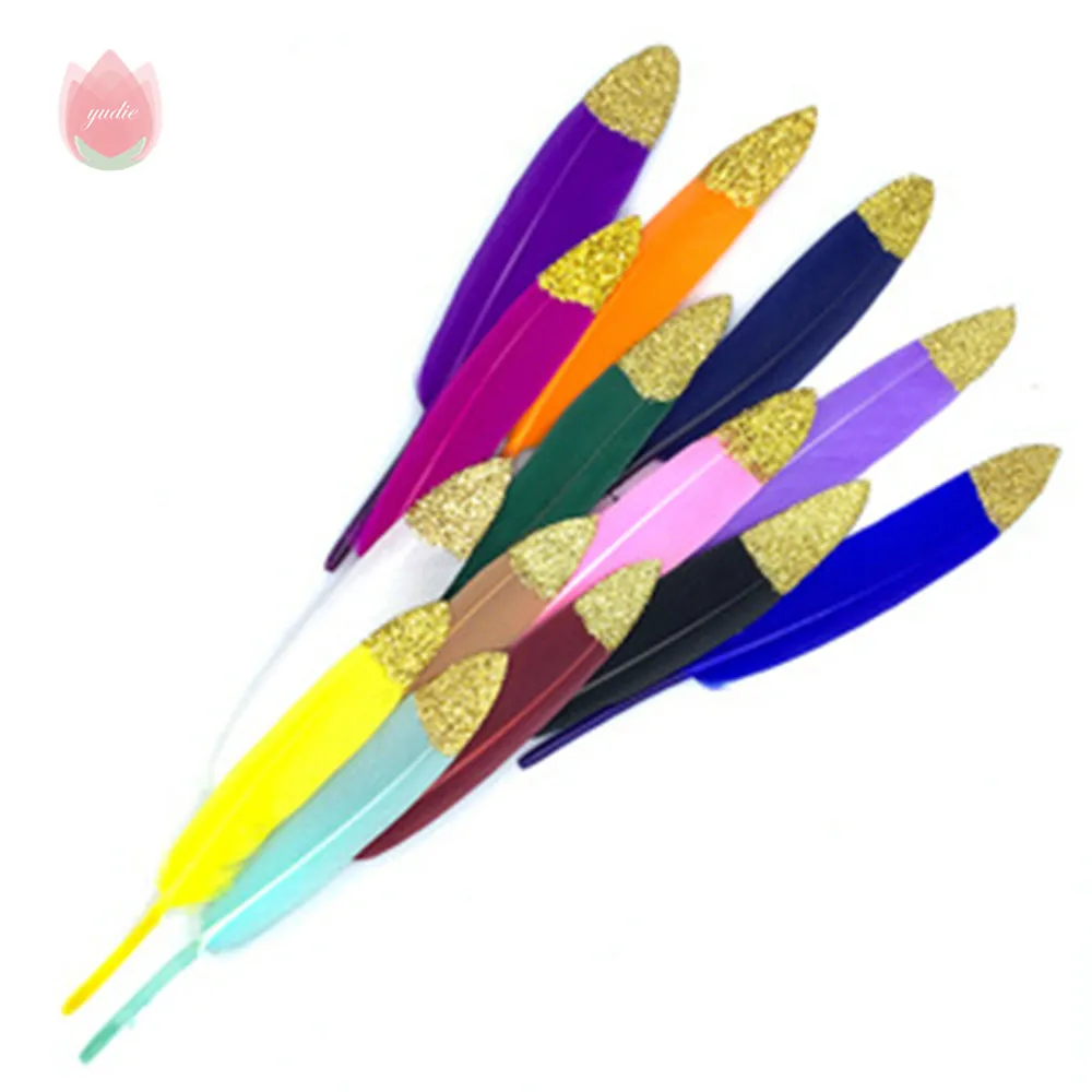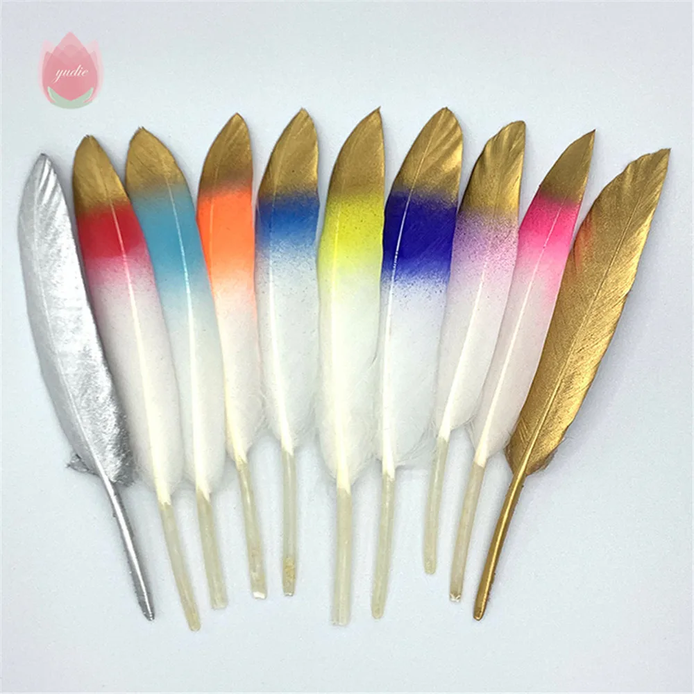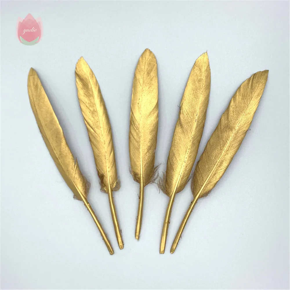 10 шт./пакет позолоченные ПЕРЬЯ 5-7 дюймов на Рождество и Свадебная вечеринка украшения и поделок своими руками, принадлежности для рукоделия украшение дома