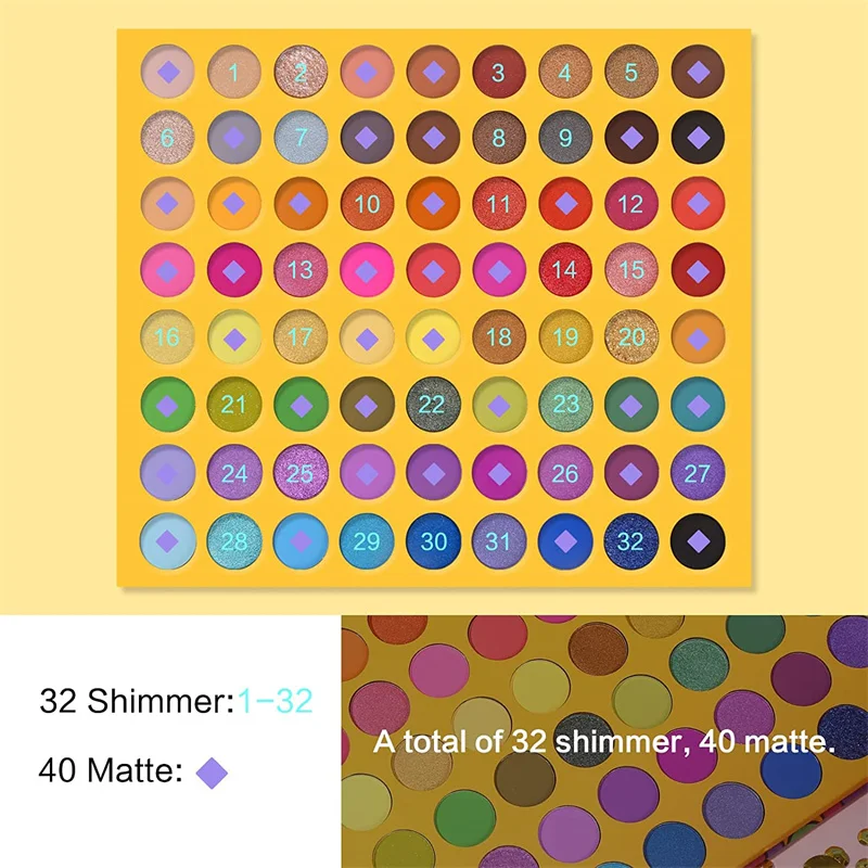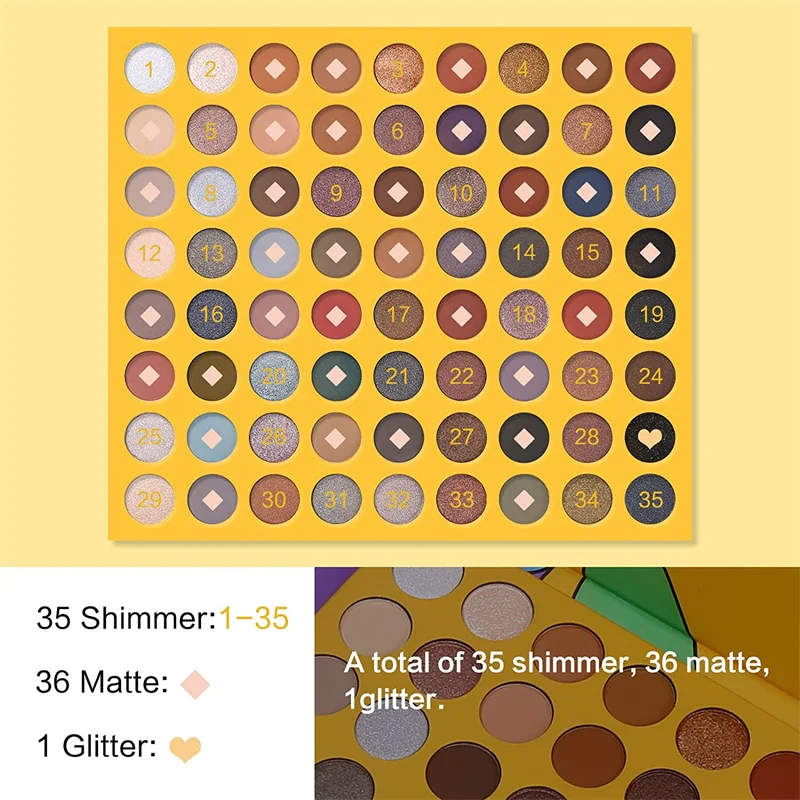 Есть 6 частей отделки, включая матовые, микробленды, блестки, смешанные перламутровые, микро-переливающиеся и мерцающие, которые полностью подходят для женского косметического макияжа.