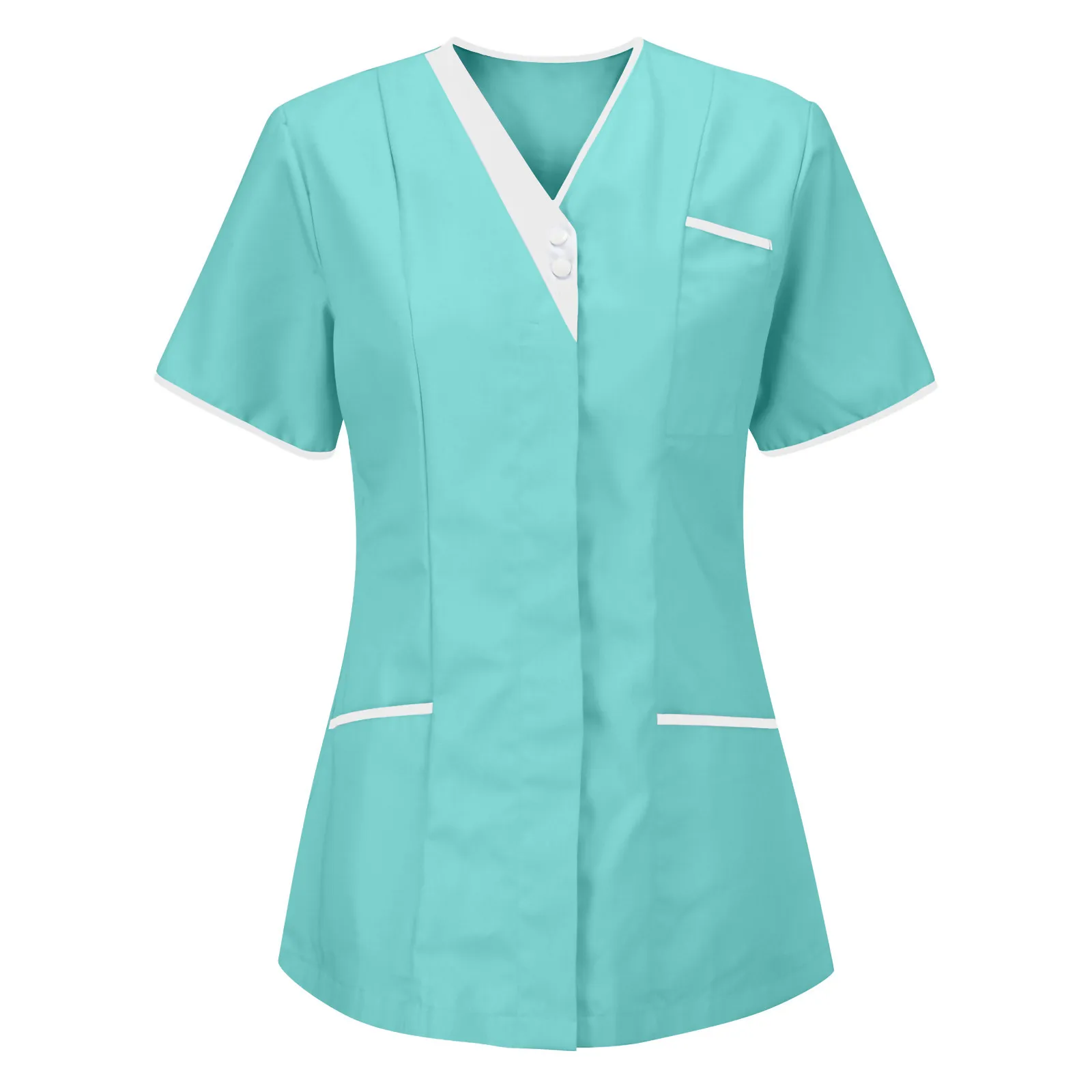 Женские топы с коротким рукавом, топы с v-образным вырезом, Рабочая Футболка с принтом, блузка