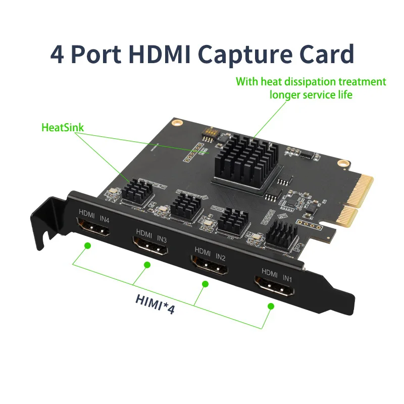 1. Хост-интерфейс: PCIE 2,0 X4 20 ГБ/сек. пропускная способность передачи 2. Видеовход: 4 HDMI 3. Аудио вход: 4 LPCM аудио сигнала 4. Формат входного сигнала HDMI: HDMI 1,4 5. Частота дискретизации видео: в соответствии со спецификациями DirectShow 6. Аудио и видео Захват: Соответствует спецификации DirectSound 7. Цветовое пространство на выходе: YUY2 8. Разрешение ввода: Любое разрешение в пределах 1080P 9. Аппаратное депереплетение: Поддержка 1080i аппаратное депереплетение, 3D алгоритм шумоподавления, более четкое изображение 10. Поддержка операционной системы: Windows XP/7/8.1/10 32 бит/64 бит 11. Совместимое программное обеспечение: кодировщик Windows медиа, графический кодировщик, Реальный производитель плюс, VLC, Wirecast VMIX... 12. Совместимый интерфейс разработки: стандартный интерфейс DirectShow (Windows) 13. Потребляемая мощность: <= 5,0 Вт 14. Диапазон рабочих температур: 0-85 градусов Цельсия