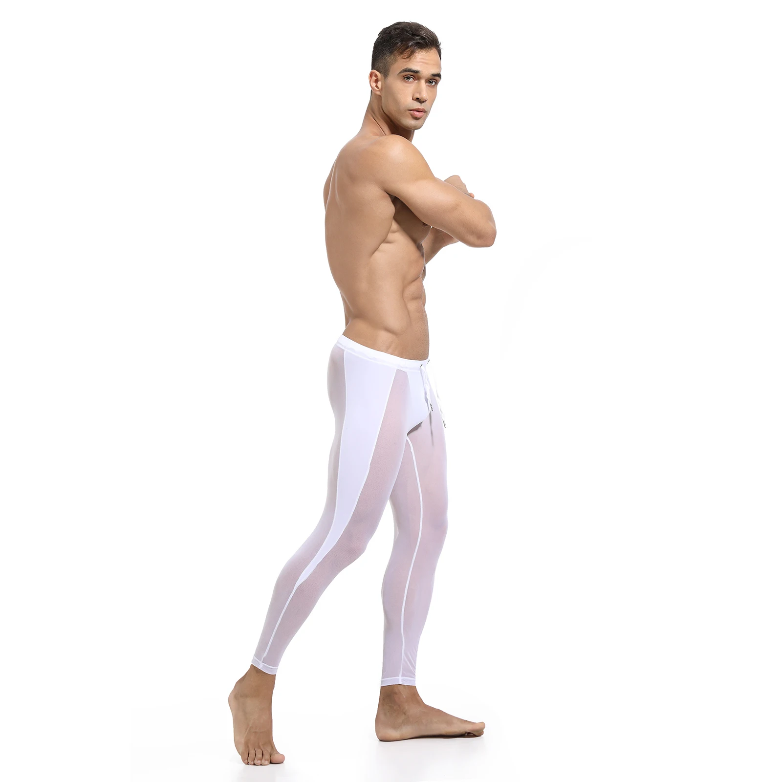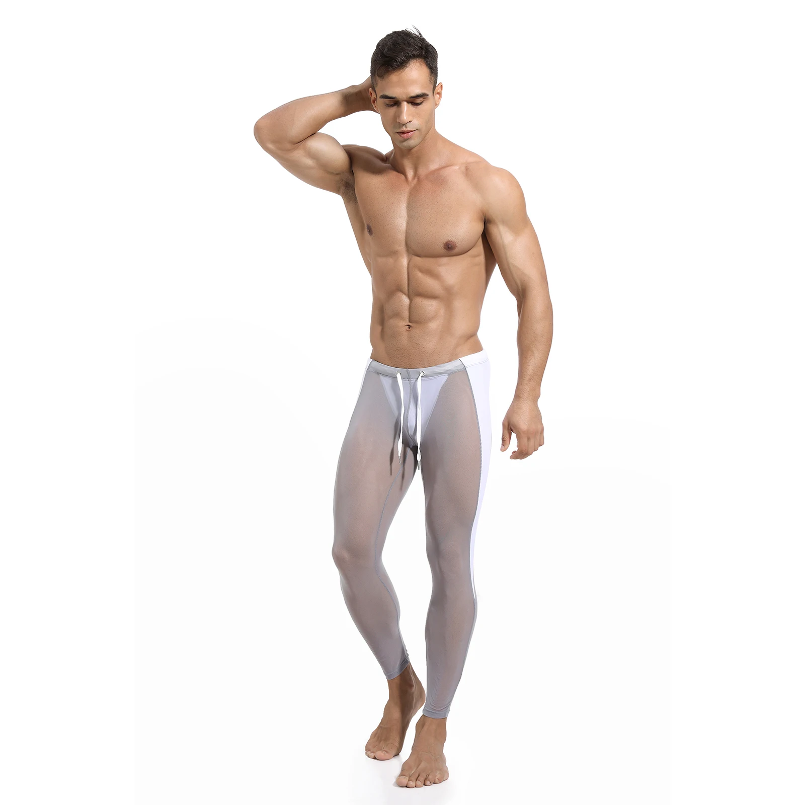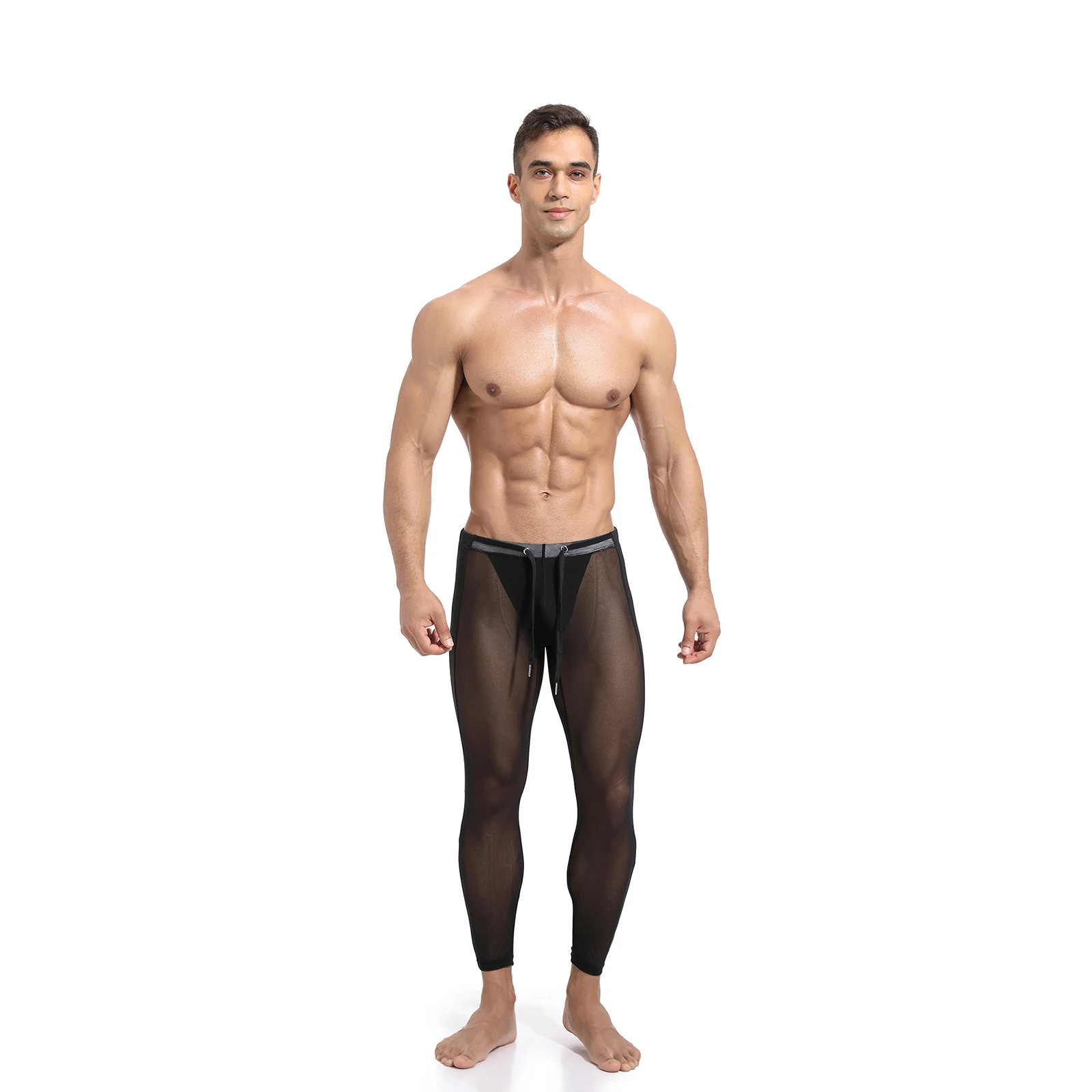 Мужские дышащие спортивные брюки из сетчатого материала чистого цвета с эластичным поясом и завязками сбоку.
