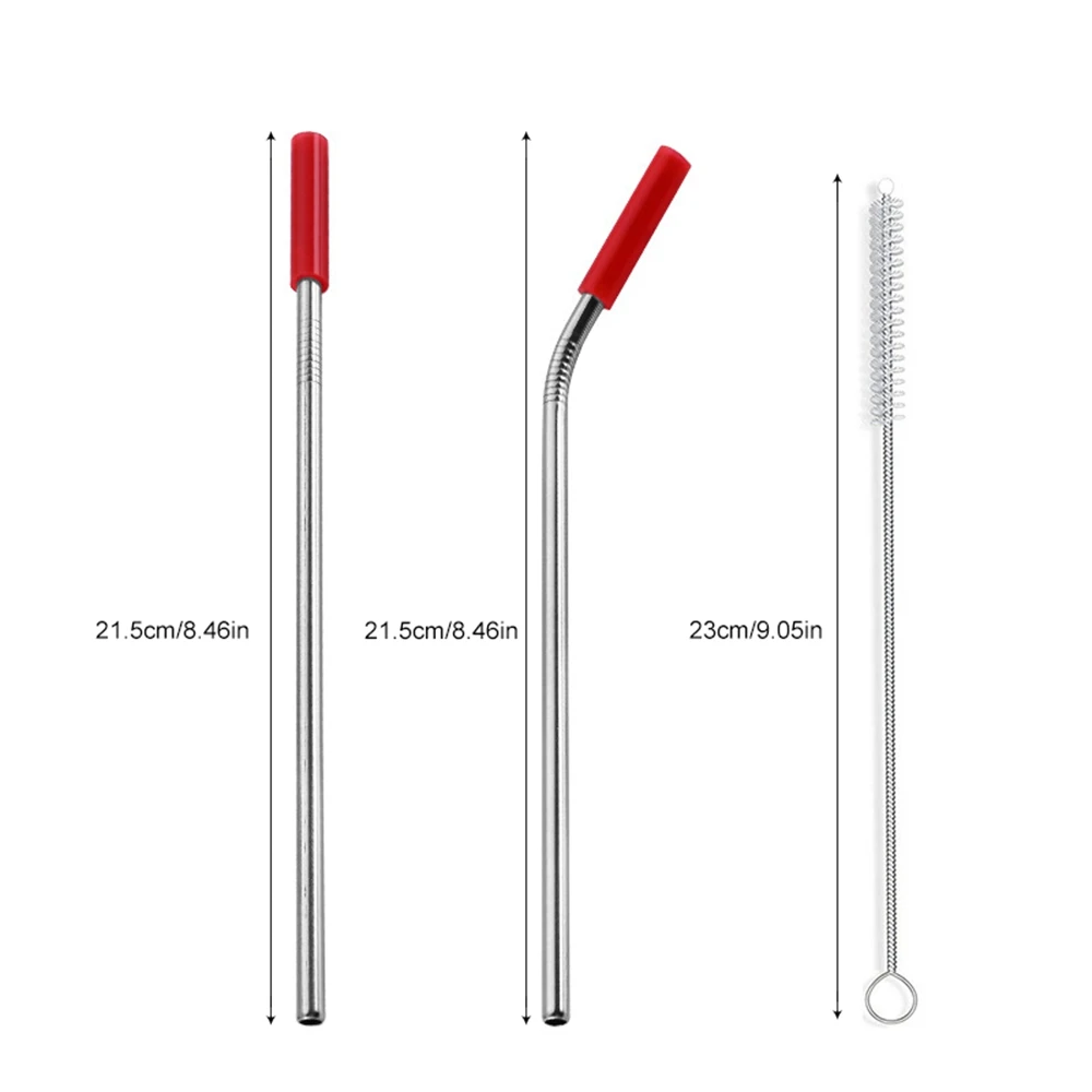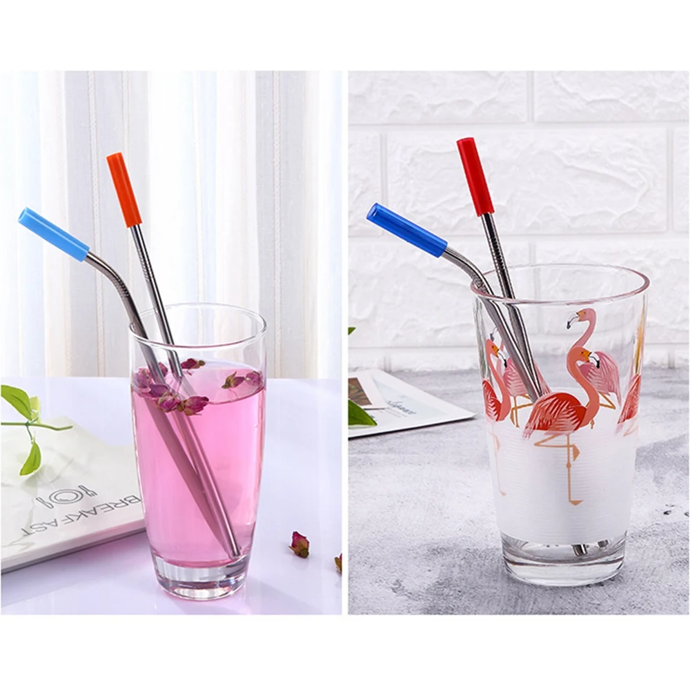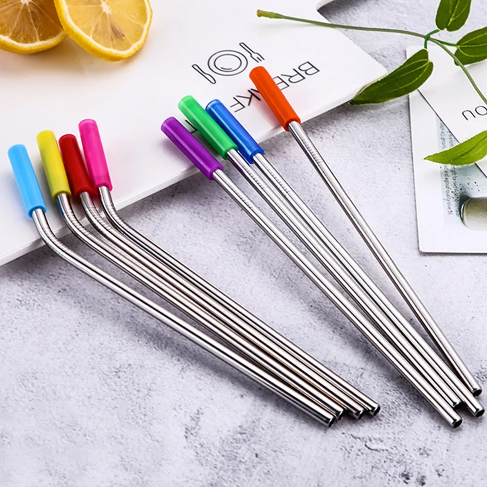Многоразовые соломинки из нержавеющей стали 6 шт./компл. прямые согнутые соломинки с силиконовыми наконечниками для горячих и холодных напитков