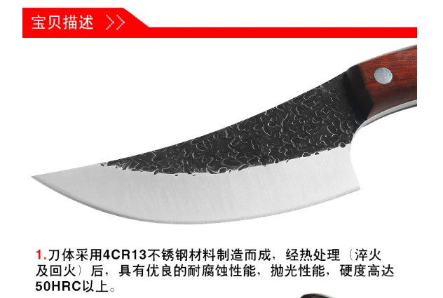 В последнее время некоторые отдельные покупатели используют продукты в рубчатой кости, рубят кости. Наша компания еще раз напоминает нам, что эти 4 стиля ножей-нож для скрепления, нож для убоя, нож для нарезки и нож для резки соответственно. Для срока службы и остроты инструмента, пожалуйста, не используйте для резки кости и других твердых предметов, если вы не используете обычное использование повреждения продукта, не относится к сфере нашей гарантии и компенсации, пожалуйста, обратитесь к покупателям в нормальном и разумном использовании инструмента.