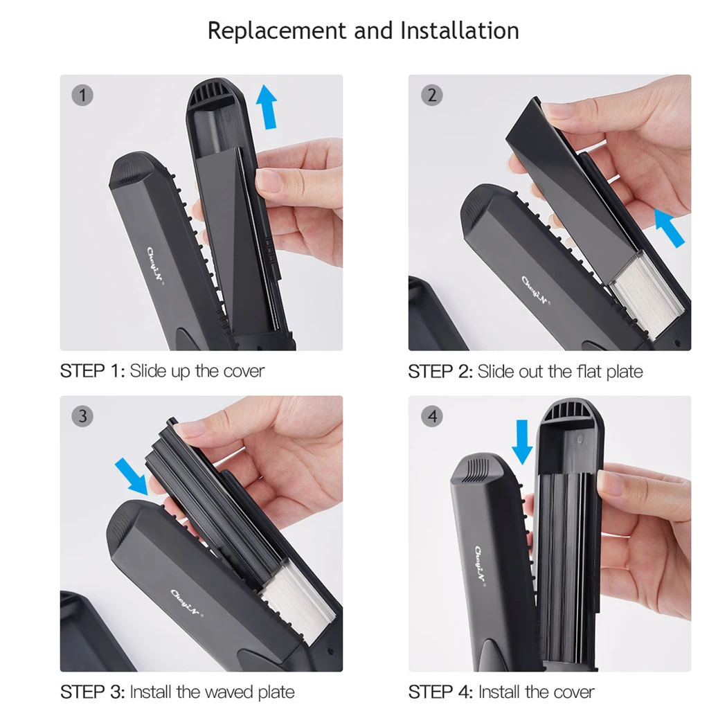 ▲ 4-в-1 Сменные пластины для выпрямления волос инструмент для укладки волос, содержит L Волновой Пластинкой, M, Волновой Пластинкой, Волновой Пластинкой и технические характеристики пластинчатого солнечного.