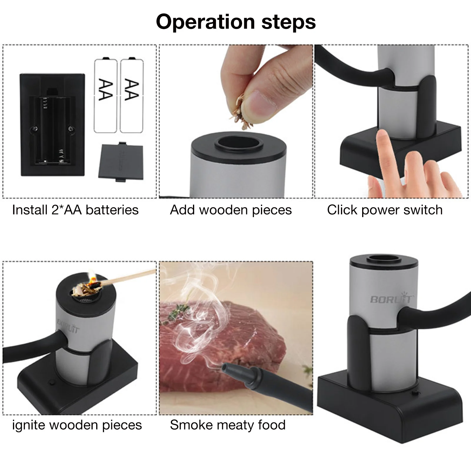 1. Добавьте аромат для еды: наш курильщик может добавить к вашей еде или напитку в течение короткого времени более гладкий вкус и аромат. Используя Настоящие Деревянные чипсы, чай, травы, специи, сено и сушеные цветы, они могут производить холодный дым для продуктов питания или напитков без изменения текстуры и температуры, наслаждайтесь натуральными и аутентичными копчеными продуктами и напитками без сжигания или сильного сжигания дыма.5. Лучшие подарки: подарки на день рождения, рождественские подарки, подарки на день благодарения или подарки на день Святого Валентина. Могут быть отправлены подругам, мальчикам, женам, мужьям. Чтобы сохранить долговечность и срок службы, пожалуйста, часто опускайте камеру сгорания курильщика, протрите ее влажной тканью и высушите ее должным образом.