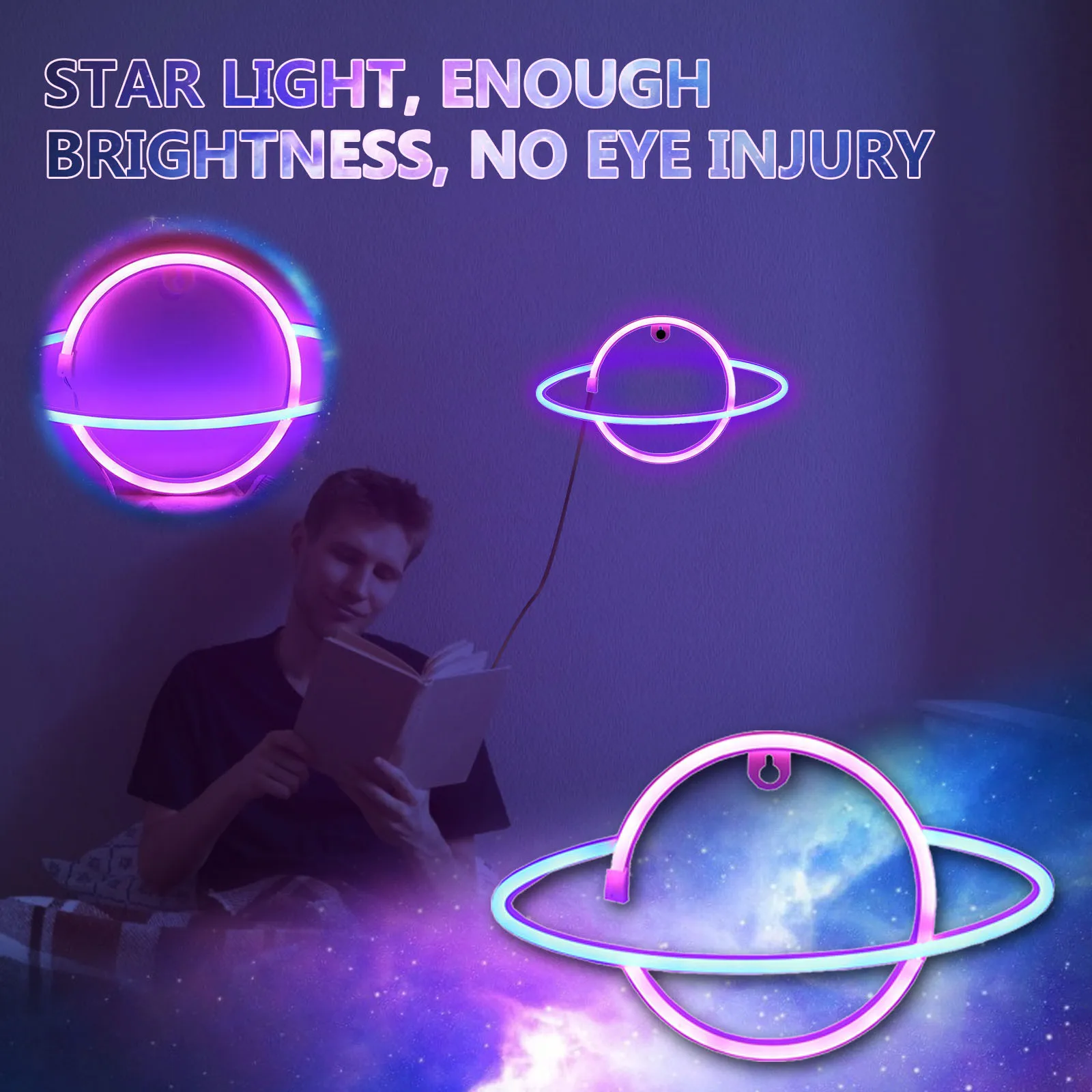 Светодиодный неоновый светильник в форме планеты, украшение в форме вселенной, красный декоративный светильник