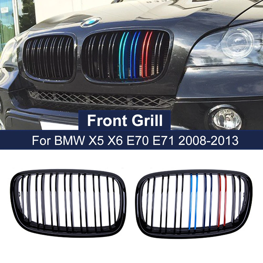 Передняя крышка для автомобильного гриля, накладка на почечную решетку для BMW X5 X6 E70 E71 2008-2013 M-Color Dual Slat Racing Grills