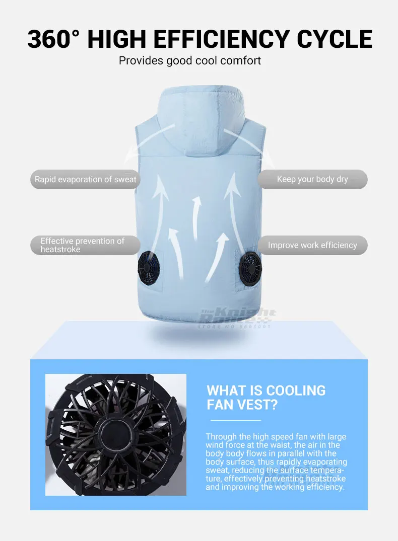 Жилет охлаждающего вентилятора прост в эксплуатации и безопасен. Машинная стирка, пожалуйста, не забудьте снять сборку вентилятора перед очисткой.