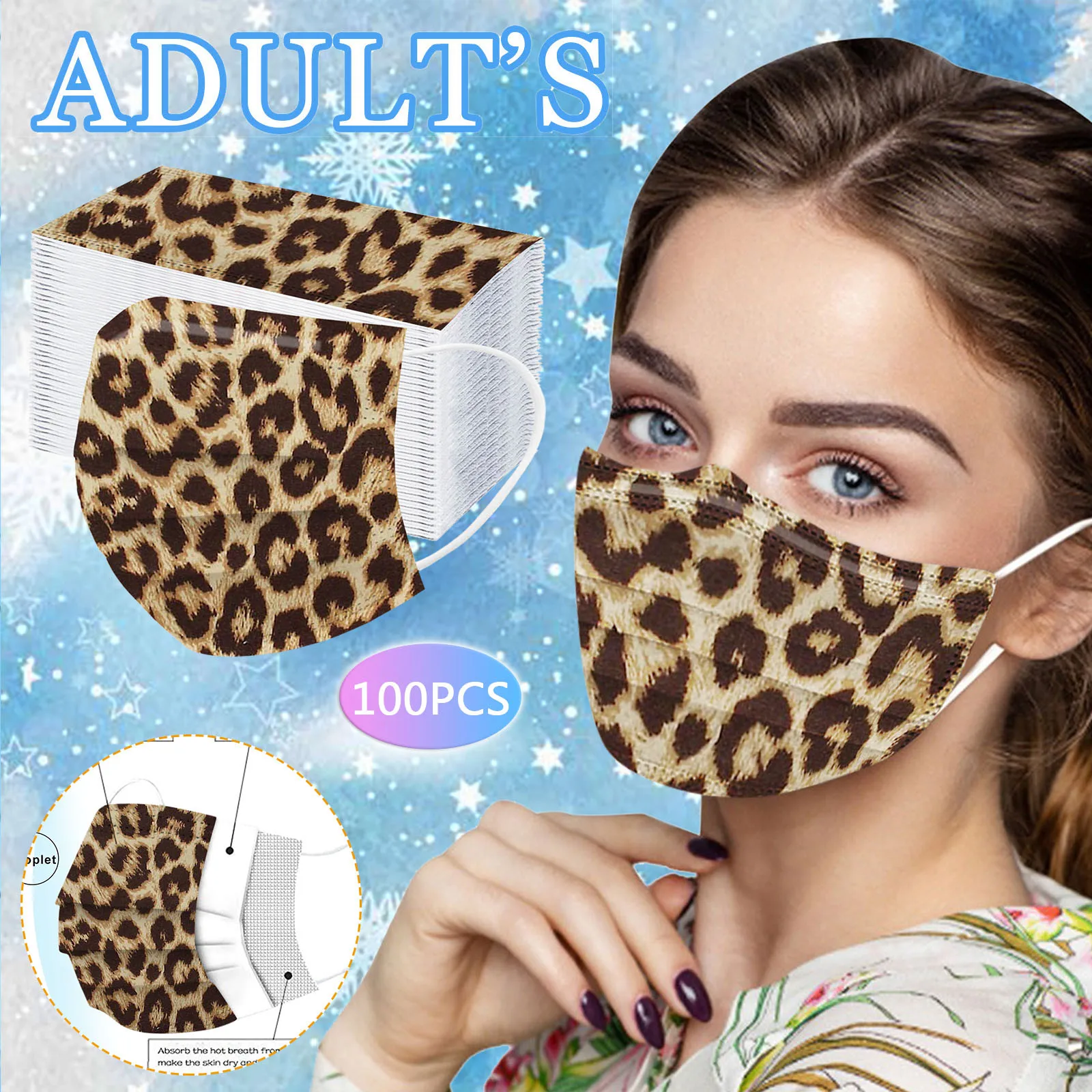 В 3 слоя Нетканая одноразовая маска изготовлена из 3 слоев нетканого материала, Безопасен и безопасен для использования. Дышащий материал и милый Узоры, которые делают его полезным и модным. Специальный 3 слоя из нетканого материала Дизайн, обеспечивает некоторую защиту от пыли, автомобильных выхлопных газов, Пыльца и т. д. эластичная Ушная петля, легко носить и не давит на уши. Маникюрный салон или любые другие области, где может потребоваться защита