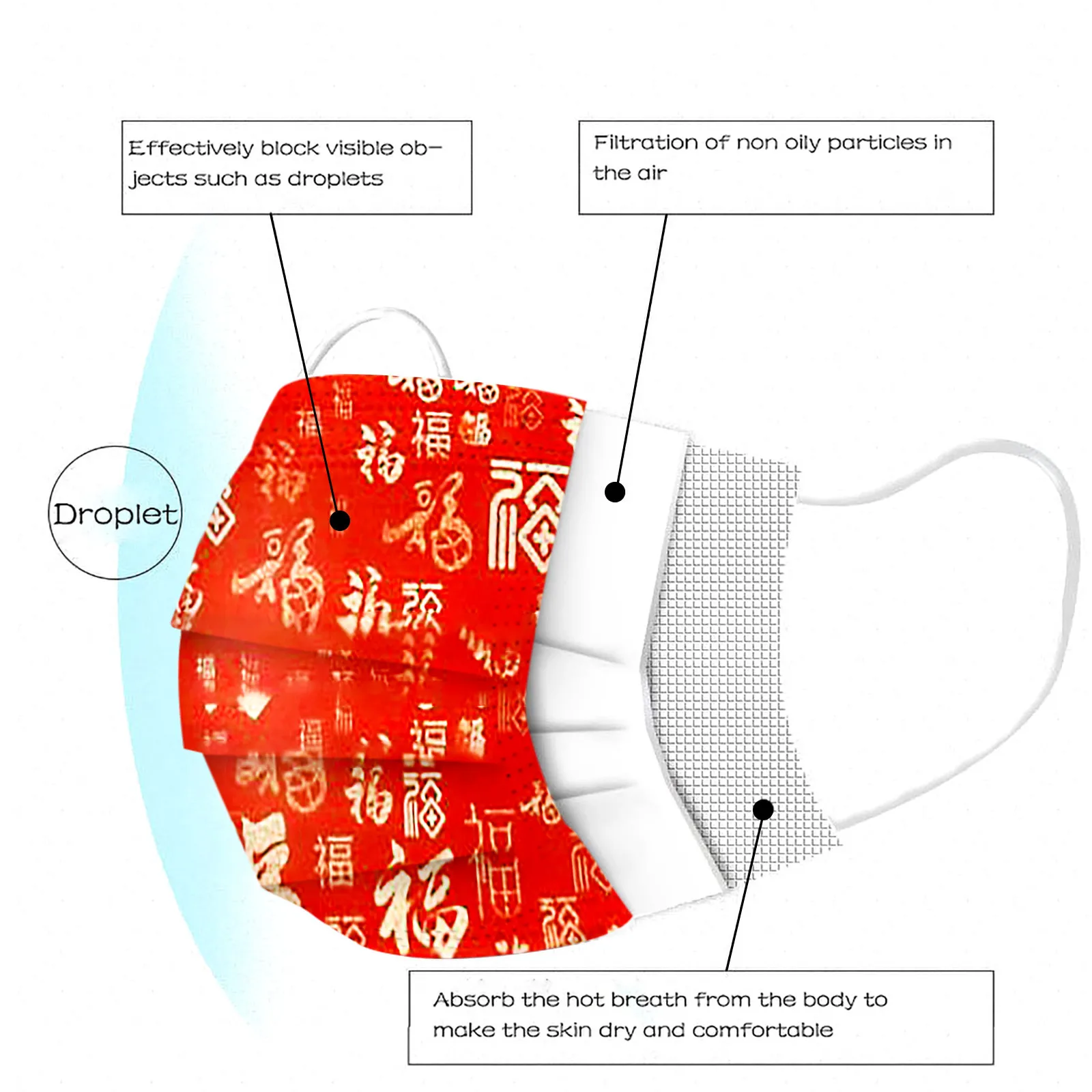 3 слоя Нетканая одноразовая маска изготовлена из 3 слоев нетканого материала, он безопасен для здоровья и безопасный для вас, чтобы использовать. Дышащий материал и милые узоры, что делает его полезным и модным. Специальный 3 слоя из нетканого материала, дизайн, обеспечивает некоторые меры защиты от пыли, автомобильный отходящий газ, пыльцу и т. Д. Эластичная петля уха позволяет легко снимать и надевать цепочку и не давит на уши. Маникюрный салон или любые другие области, где может потребоваться защита