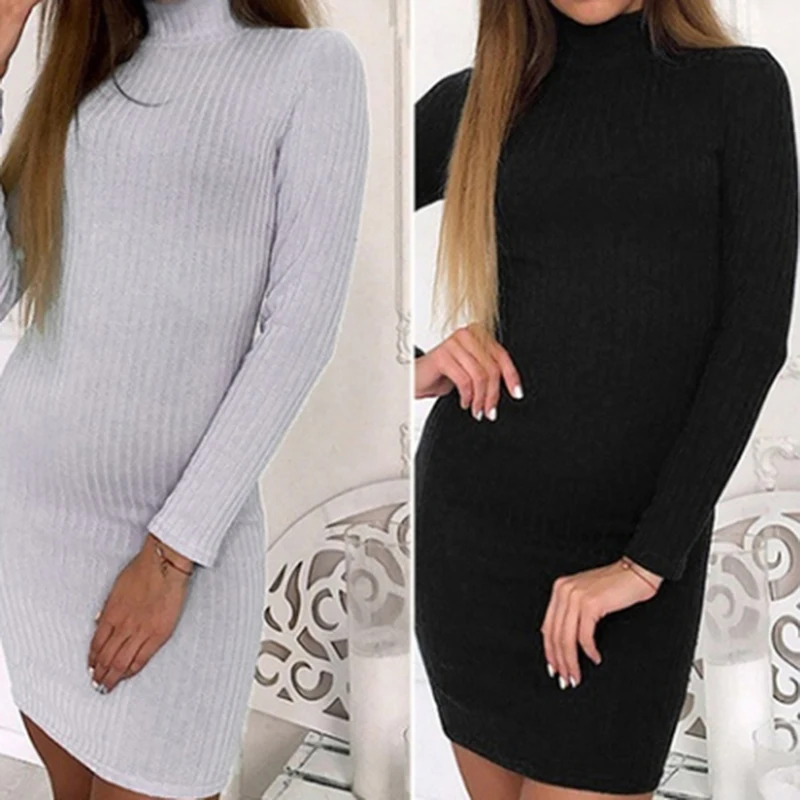 Зимнее платье, вязаное платье-свитер для женщин, большие размеры, 2021, модные вечерние платья-карандаш, Vestidos, черно-белые облегающие платья
