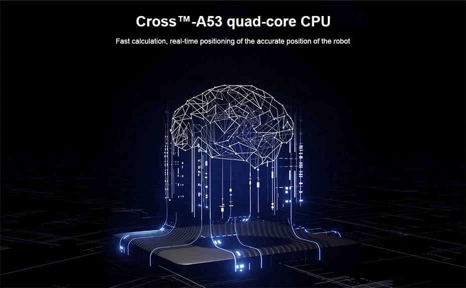 Оснащен CortexTM-A53 четырехъядерным чипом обработки, с алгоритмом VSLAM, он обладает более сильной вычислительной мощностью, может найти точное положение робота в режиме реального времени и разумно нарисовать рабочий путь.