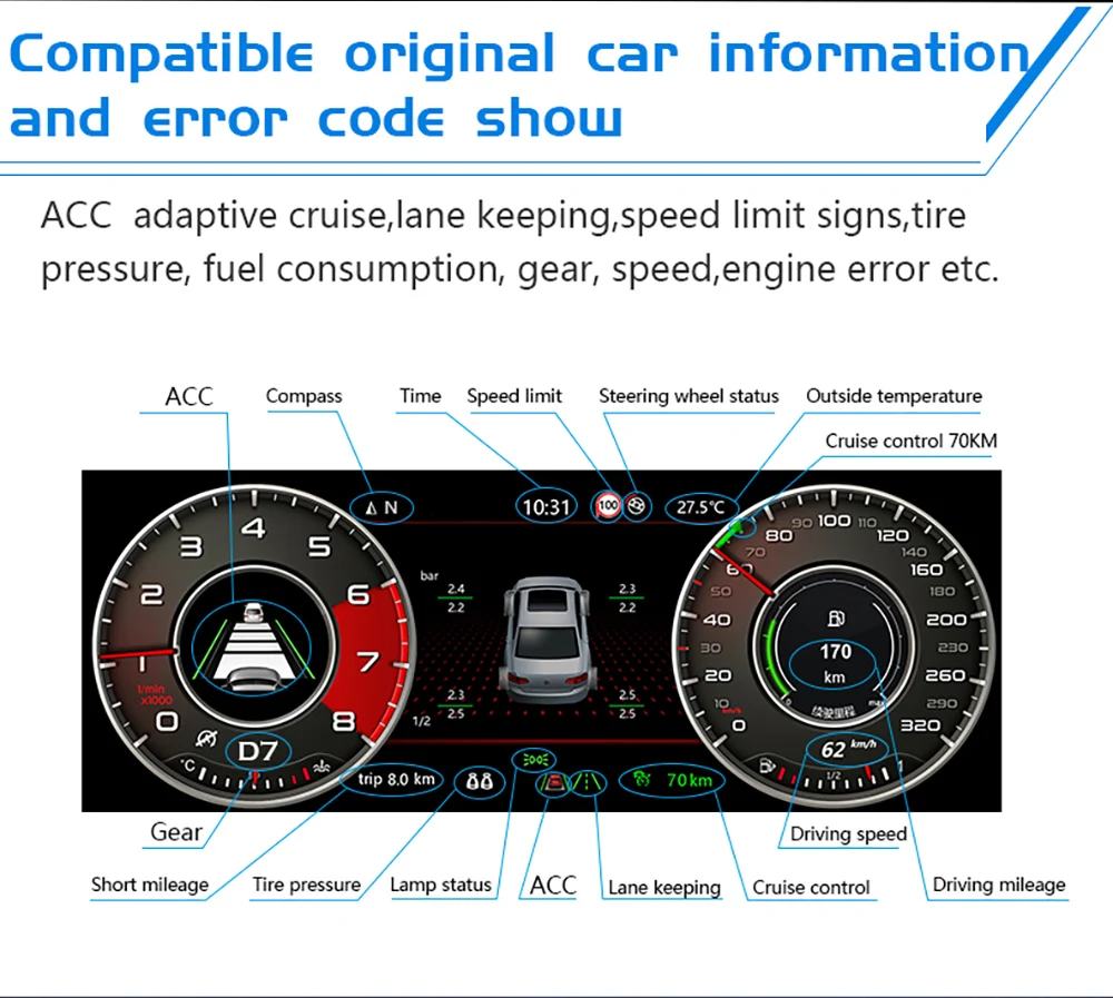 Во-первых: оригинальная автомобильная вилка не повреждена, и установка проста. Во-вторых: 12,3-дюймовый большой HD Автомобильный датчик дисплей, 1920*720P со сверхвысоким разрешением. Третье: 60 кадров в секунду 2D и 3D частота кадров, гладкая, Нулевая задержка. В-четвертых: поддерживает мобильный телефон. HDMI вход, Высокая масштабируемость. В-пятых: Храните оригинальную приборную панель автомобиля и никогда не пропустите информацию о неисправности светильник. В-шестых: синхронный дисплей заднего хода, правая слепота или 360 изображений, лучшая перспектива безопасности. Седьмое: Совместимо с оригинальным многофункциональным управлением на рулевом колесе, поддерживает круиз с фиксированной скоростью, поддерживает полосу движения. Восьмое: динамический дисплей расхода топлива в режиме реального времени. Девятый: дисплей положения рулевого колеса. Десятое: добавлен fm-запуск. 11: Операционная система LINUX, безопасность и стабильность, время загрузки составляет менее 2 секунд. Автомобильный мультимедийный плеер «AG1» для vw B8 PASSAT CC golf 7/7.5 GTI Teramont Variant