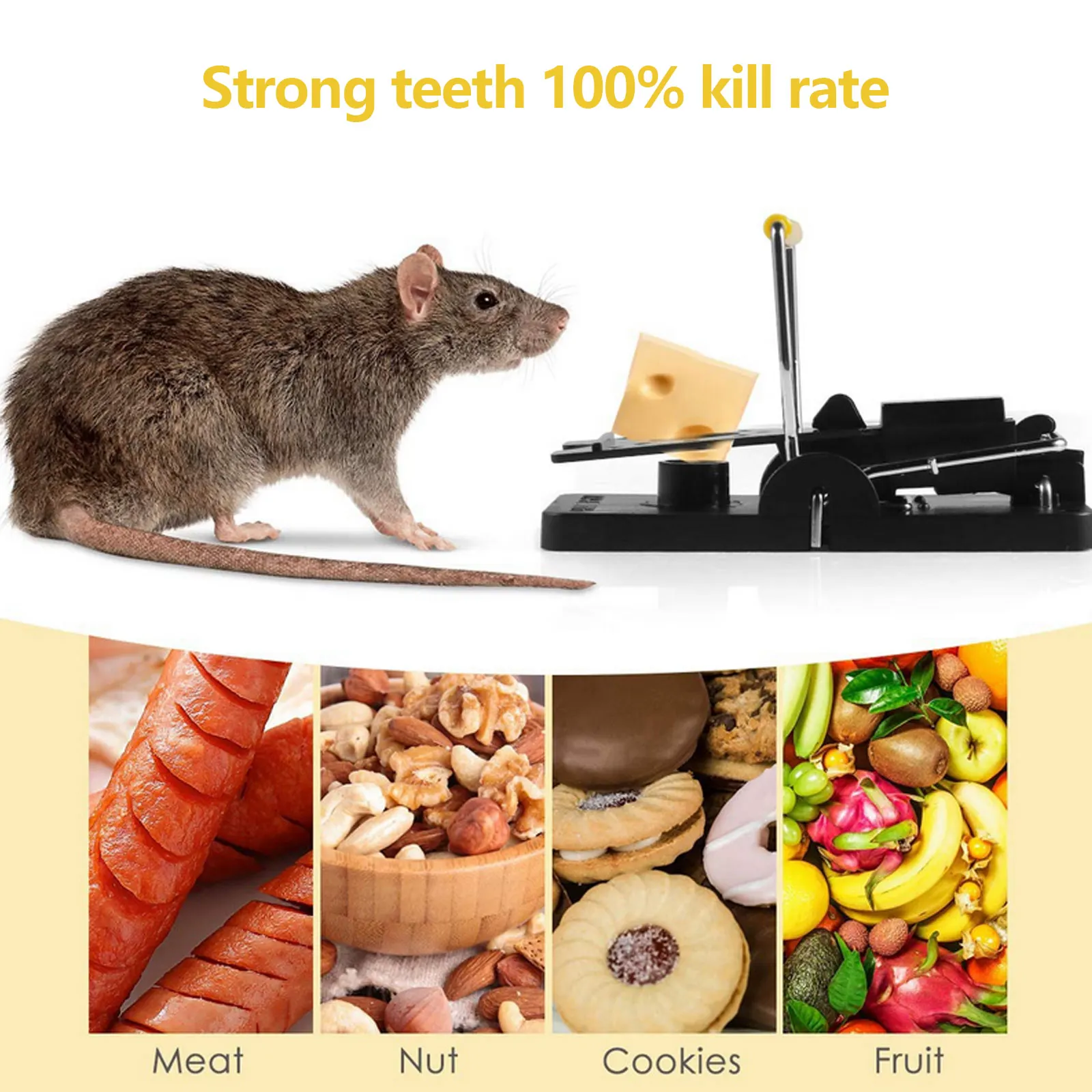 Точная технология захвата:Ловушки для мыши изготовлены из прочного пластика и прочной металлической конструкции, прочные и имеют мощную технологию защелки. Ловушки для мышей предназначены для надежного удержания еды, что облегчает захват мышей.