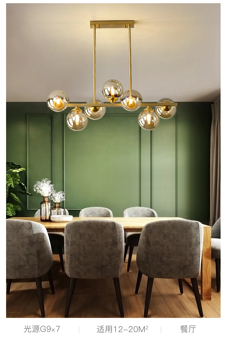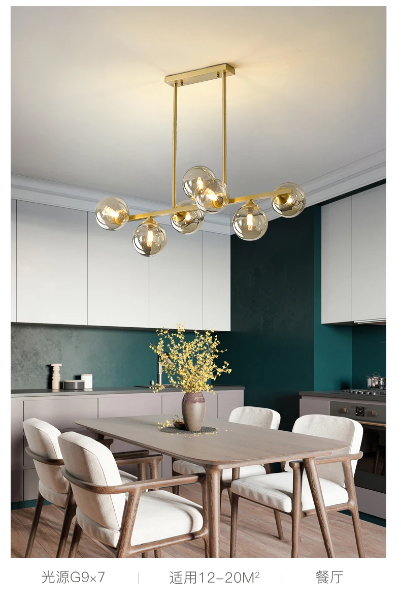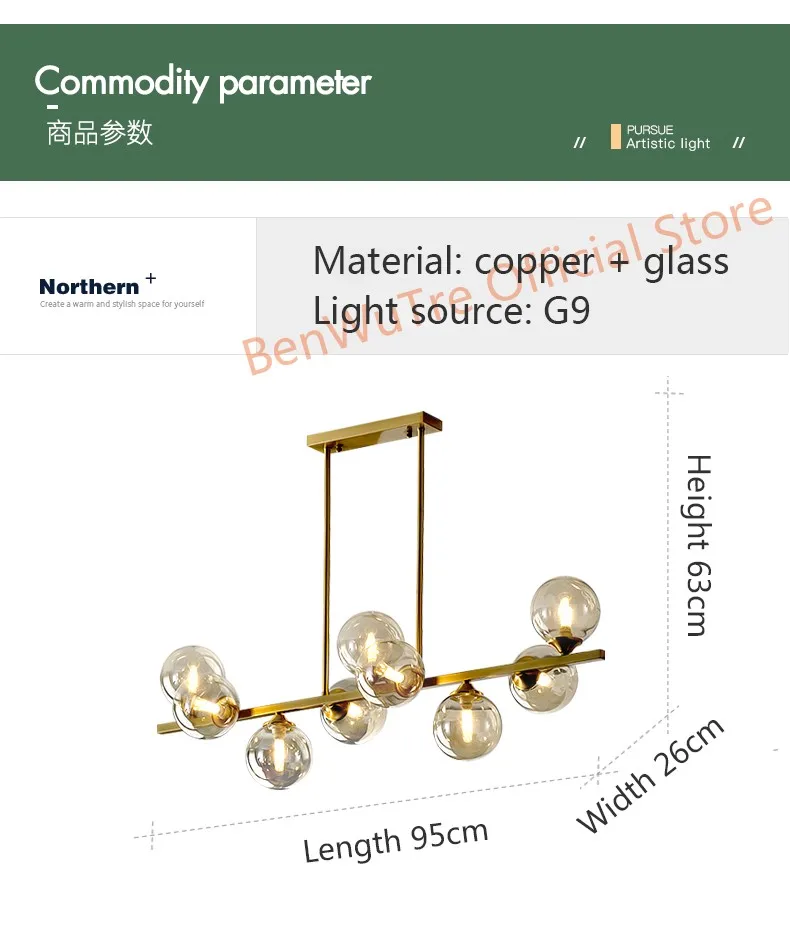 Корпус лампы: медный цвет Материал: медь + стекло Светильник источник: G9 Подходит для: гостиной, столовой, бара, офиса Размер: 7 голов-L78 * W26 * H63cm 9 головок-L95 * W26 * H63cm (Сменные: Есть три цветовых температуры, которые можно переключать (Теплый светильник, нейтральный светильник, холодный белый светильник). Через настенный выключатель, непрерывное включение и выключение для переключения цветовой температуры.)