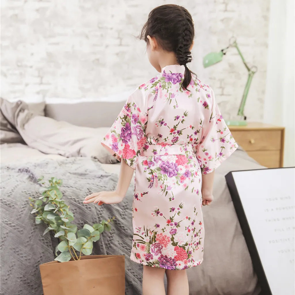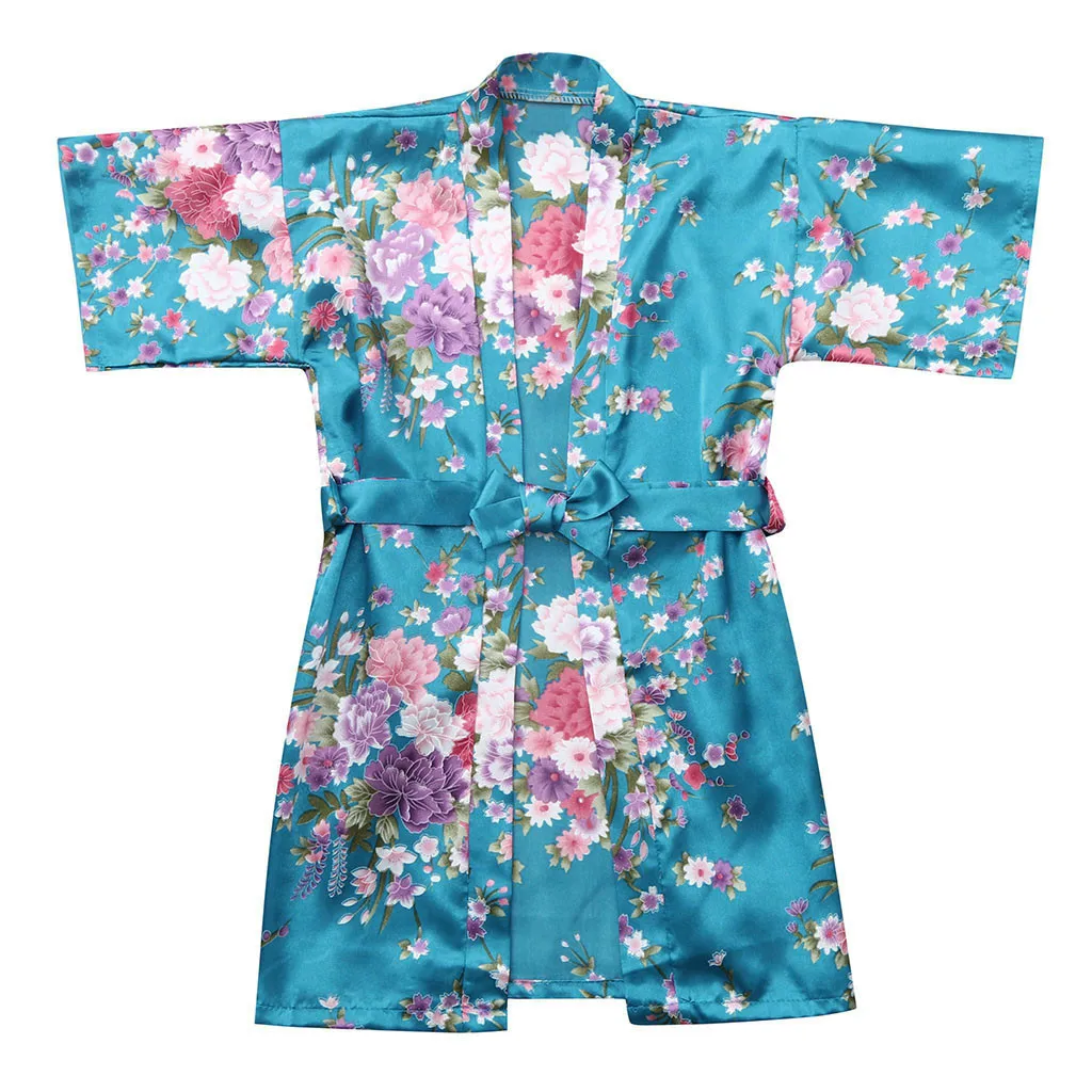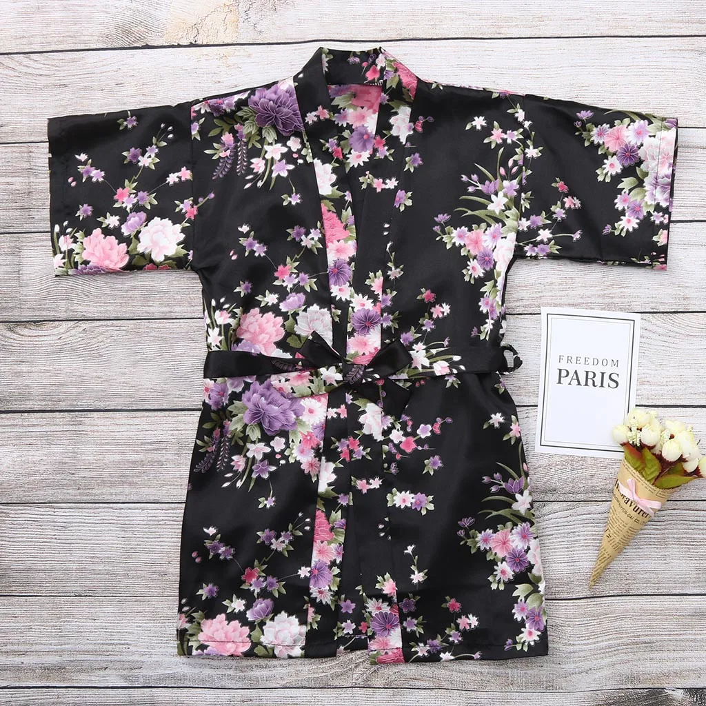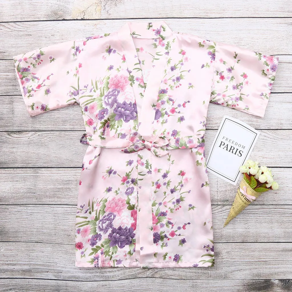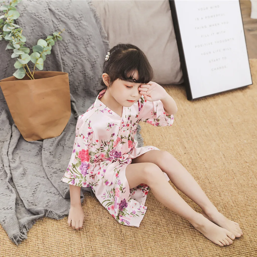 Детское шелковое атласное кимоно с цветочным рисунком для маленьких девочек банный халат, одежда для сна